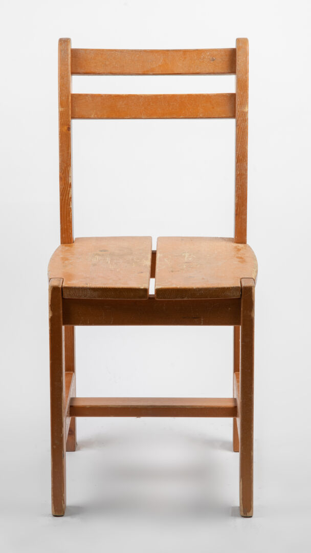 Suite de quatre chaises en bois dans le goût brutaliste. H : 85 cm