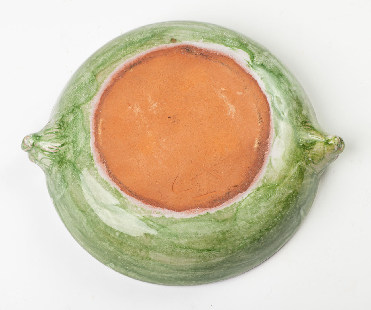 Edouard CAZAUX (1889-1874). Importante coupe en terre cuite émaillée à décor de chevaux et de fleurs, signée sous la base CX. D : 27 cm.