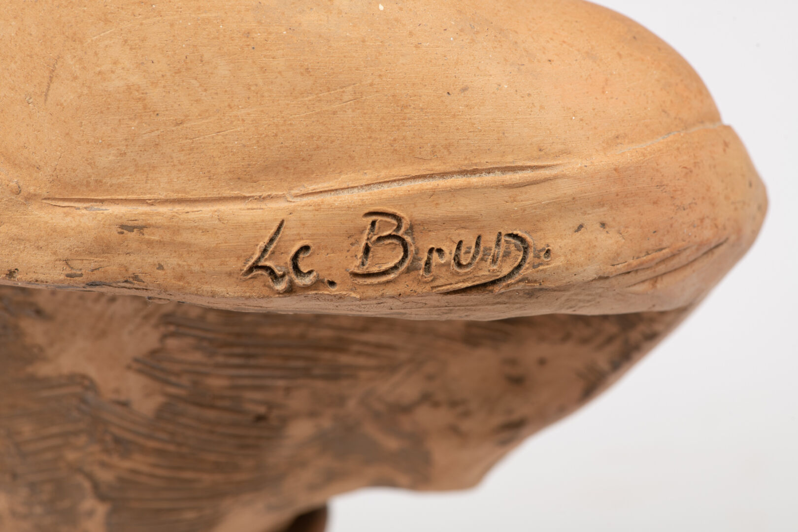D'après André Jean LEBRUN (1737-1811). Buste en terre cuite signé Le Brun sur la base. Base accidentée et recollée. H : 55, 5 cm