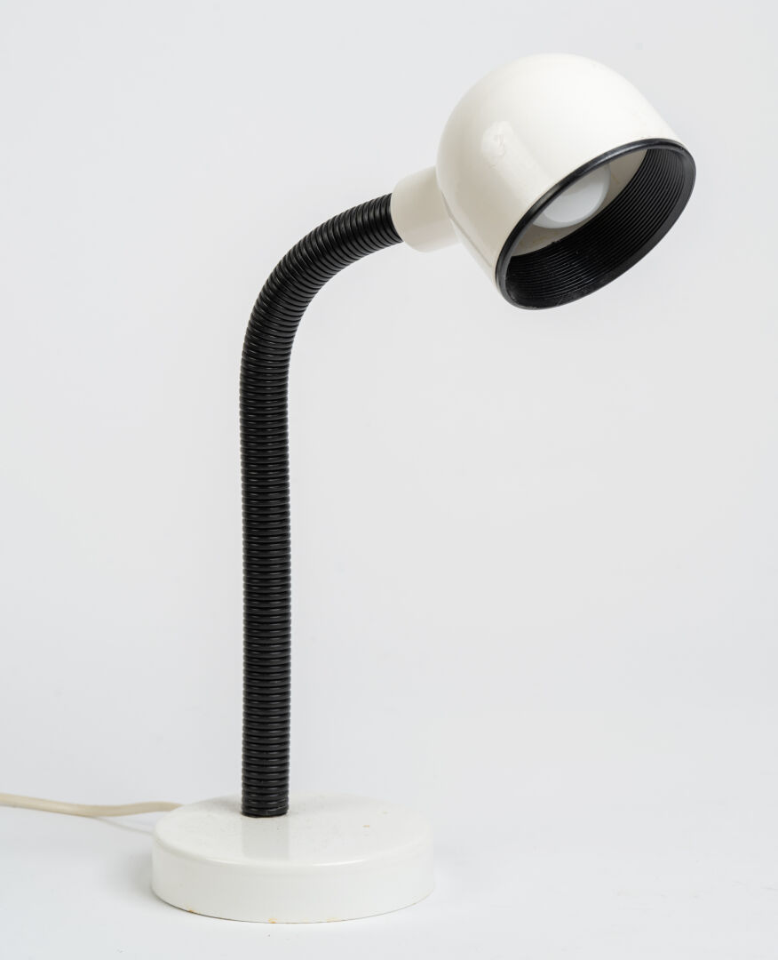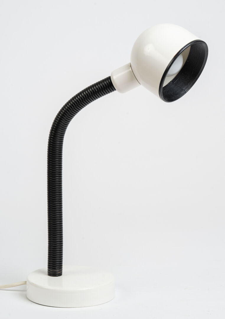 Paire de lampes de bureau en plastique blanc et noir. H : 47 cm ; L : 25 cm ; l : 12 cm