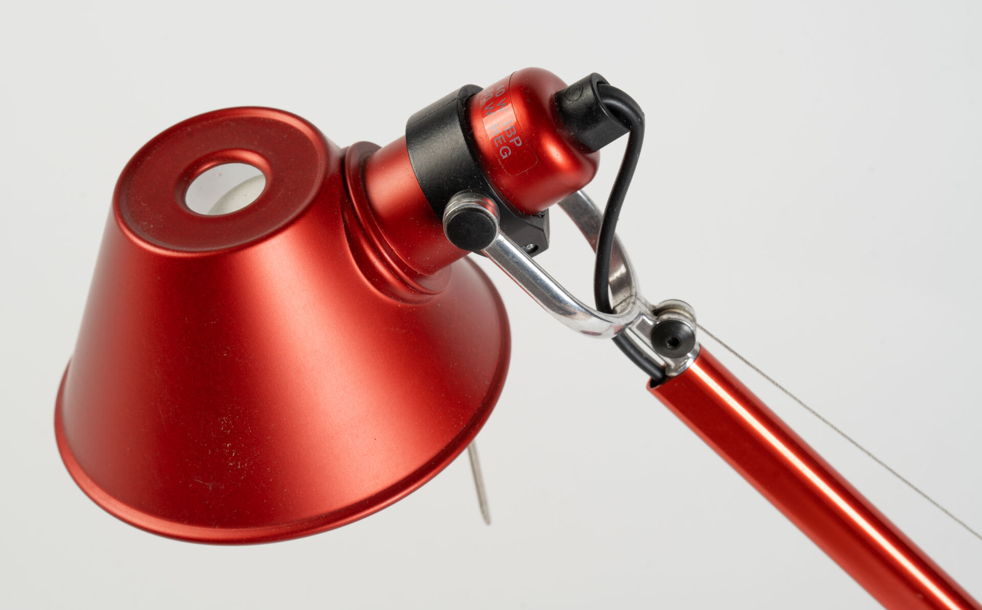 Michele de LUCCHI (1951) & Giancarlo FASSINA(1935-2019) pour Artemide. Lampe de bureau "Tolomeo micro" rouge. H : 73 cm ; D : 17 cm