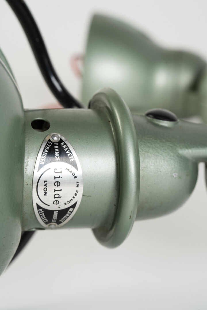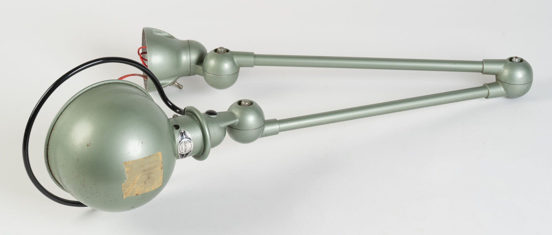 Jielde, Lyon. Lampe d'atelier articulée. Porte l'étiquette. H : 104 cm ; L : 90 cm ; l : 10 cm