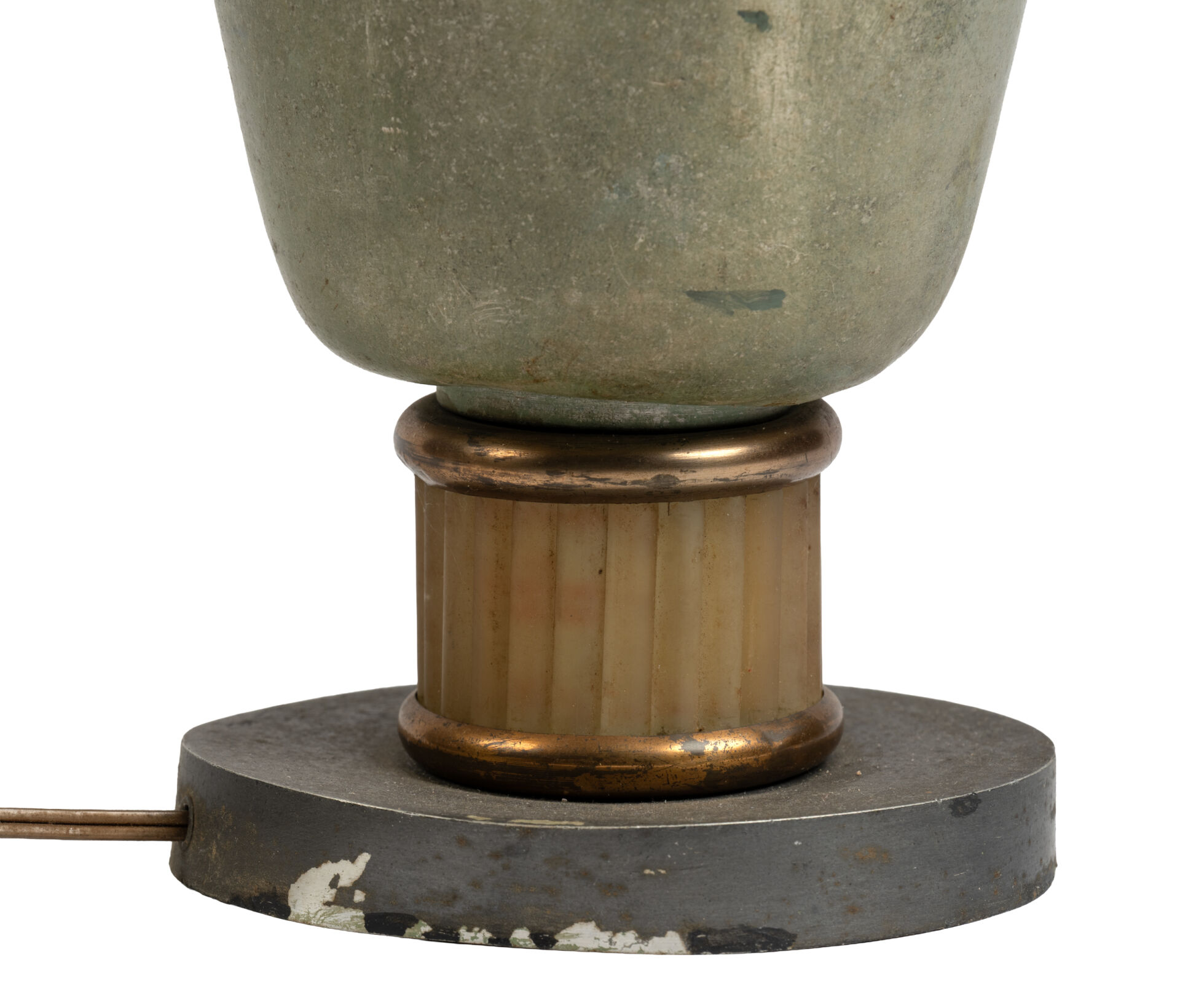 Lampe en métal doré et vert. Art Déco. H :36 cm ; D : 26 cm