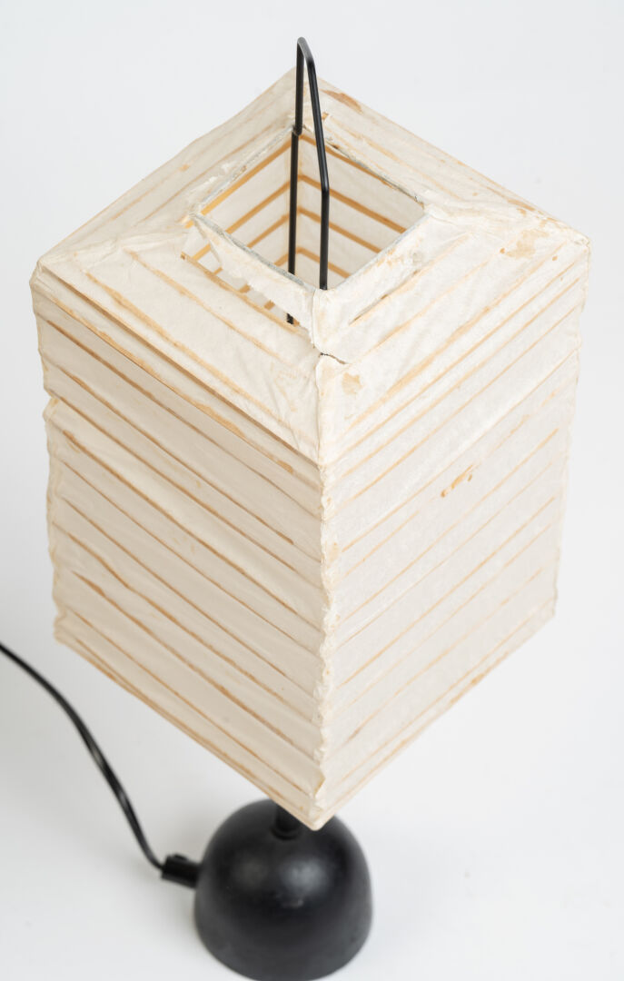 Dans le goût d'Isamu NOGUCHI (1904-1988). Lampe à poser en métal et papier. Déchirures. H : 50 cm ; L : 15 cm ; l : 15 cm