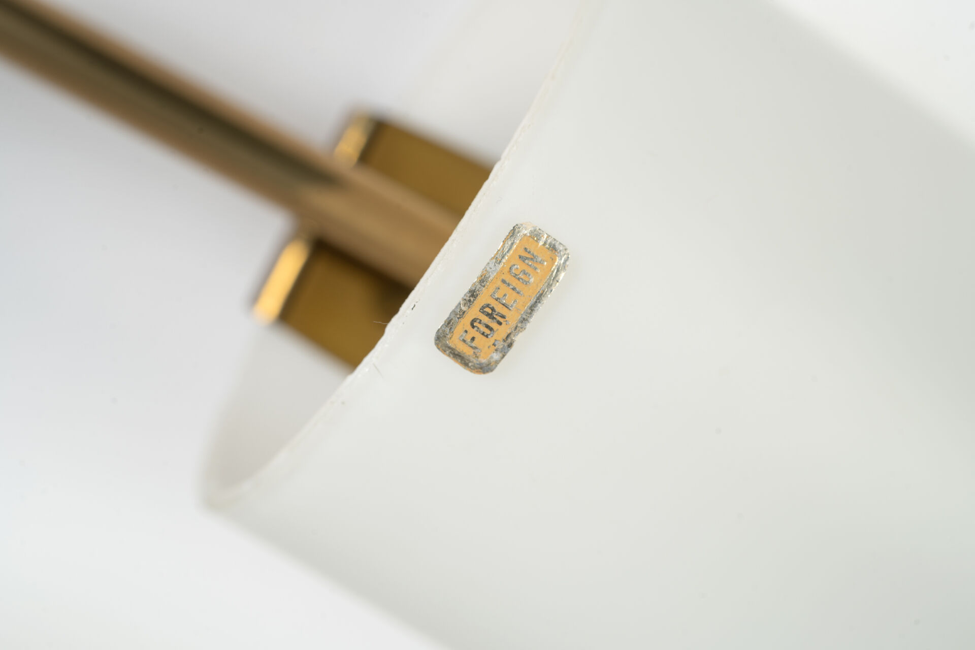 Dans le goût de la Maison Lunel. Applique avec double feux en métal doré. Vers 1950. H : 46 cm ; L : 26 cm ; l : 7 cm