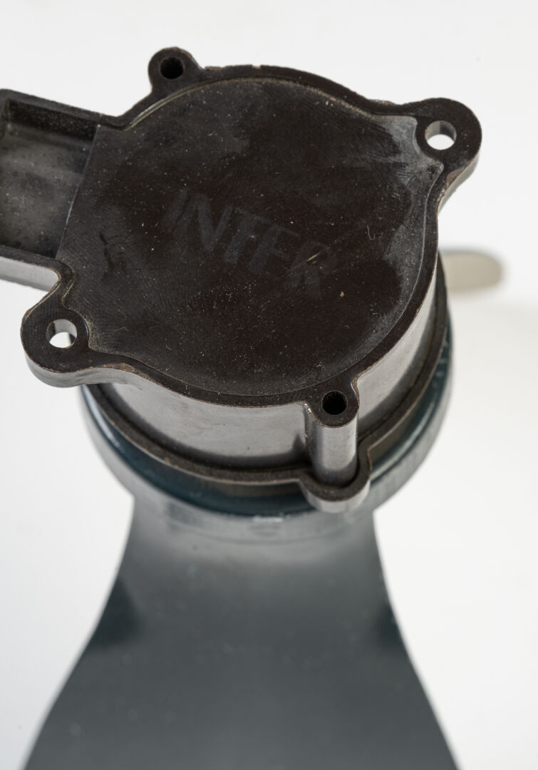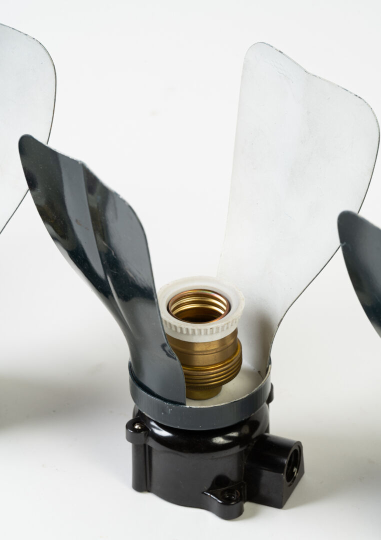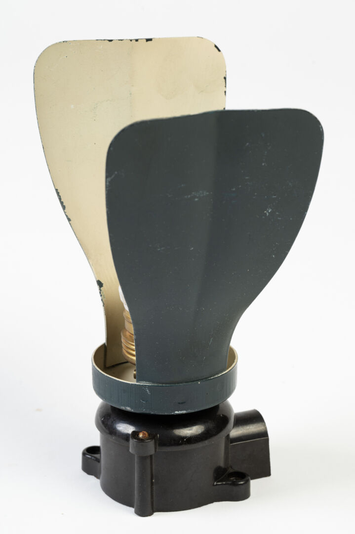 Quatre appliques industrielles avec abat-jour formant hélice en métal laqué noir et blanc. Marquées "Inter". H : 19 cm ; L : 12.5 cm l : 9 cm