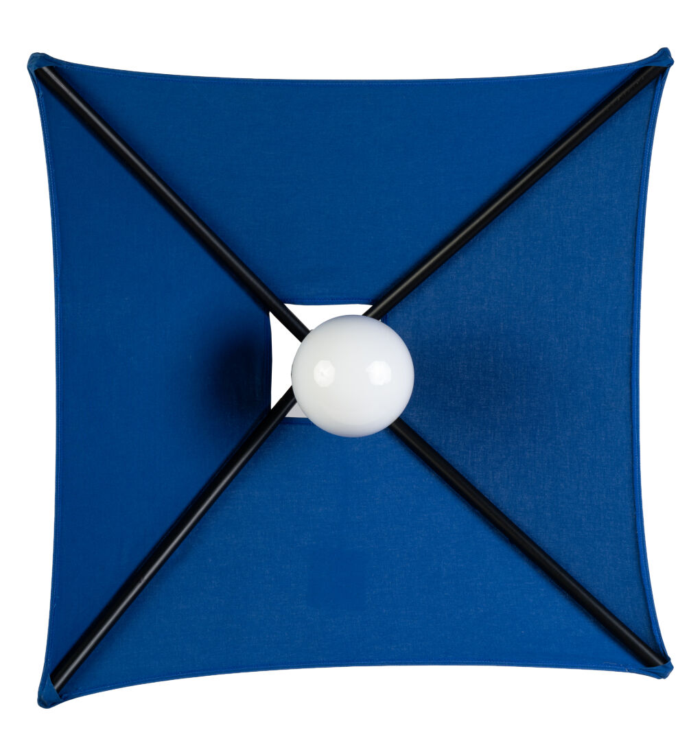 Italie. Suspension en toile bleue. Vers 1980. H : 18 cm ; D : 92 cm