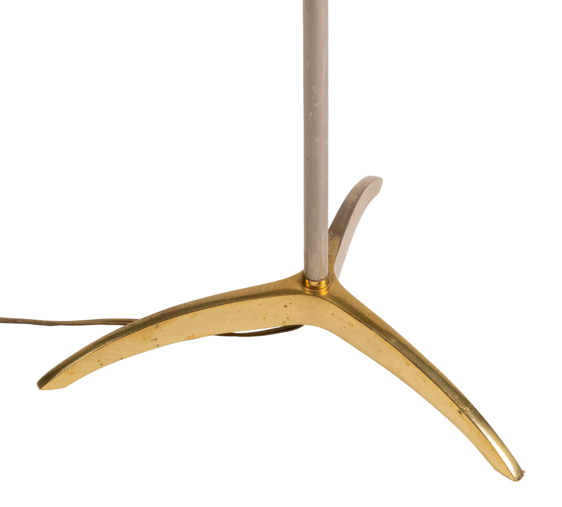 Dans le goût de la Maison Jansen. Lampadaire en laiton avec abat-jour. Vers 1970. H : 177 cm ; D : 56 cm