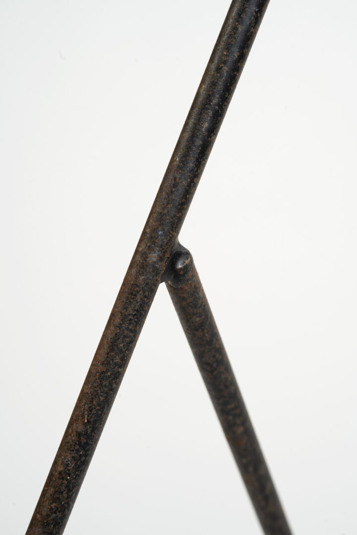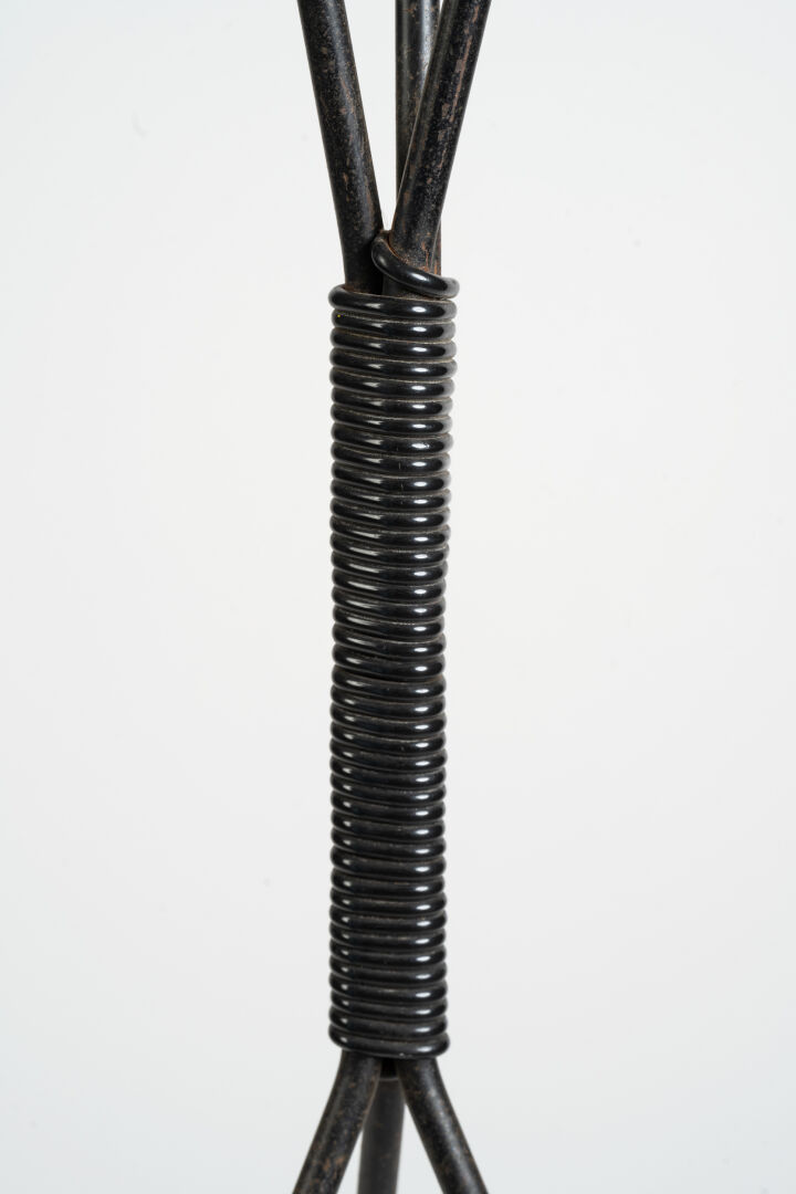 Roger FERAUD (1890-1964). Porte-manteau type "Astrolabe" en métal laqué noir et doré. Vers 1950. H : 170 cm ; L : 55 cm ; l : 44 cm