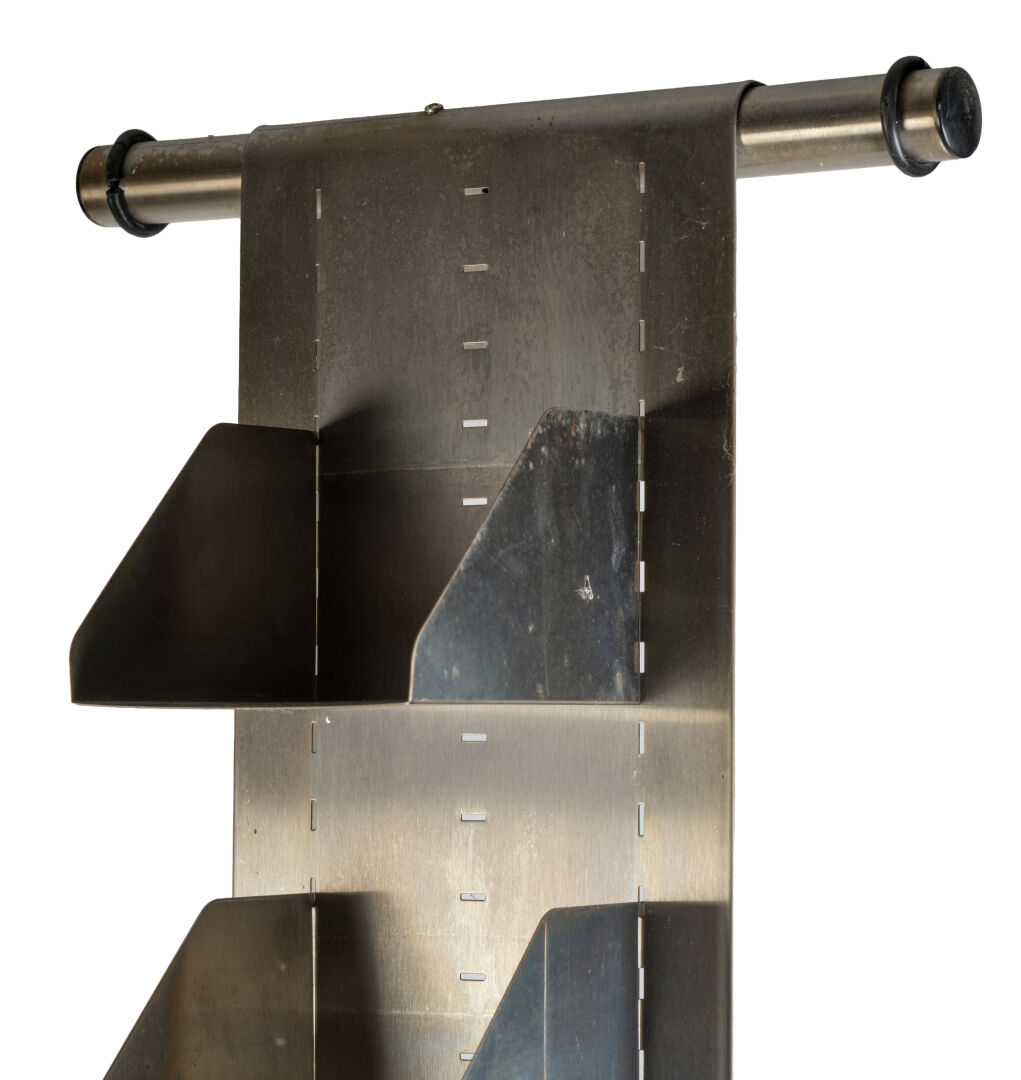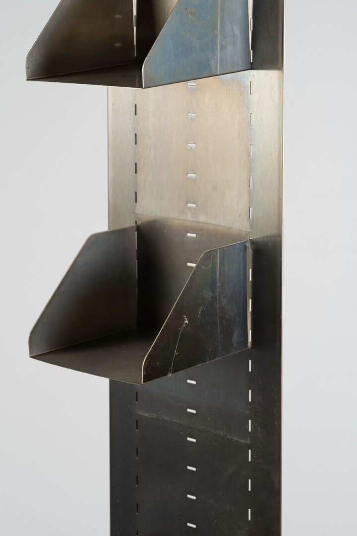 Attribué à Ligne Roset. Étagères range CD en acier brossé. H : 180 cm ; L : 35 cm ; l : 15 cm