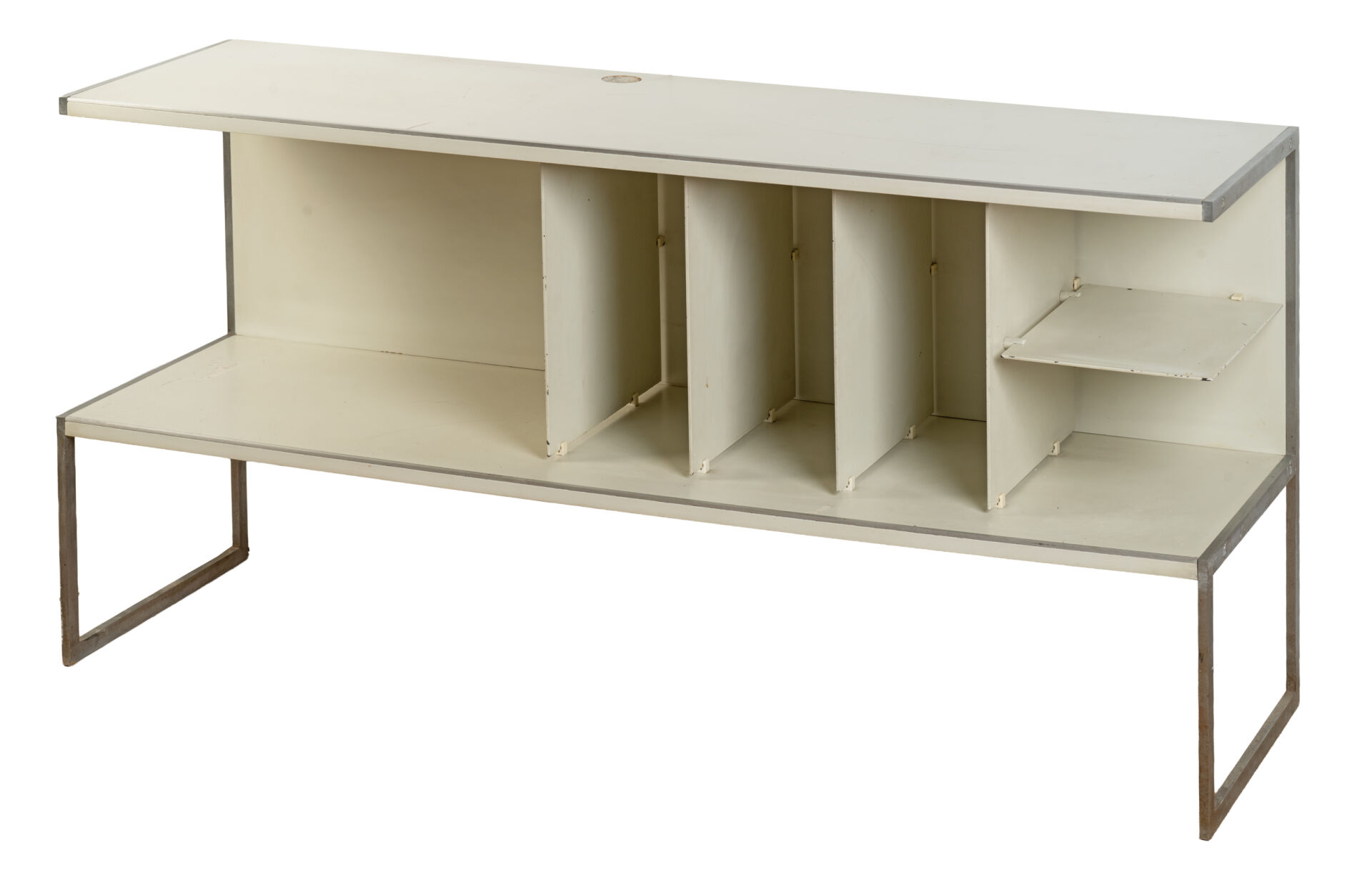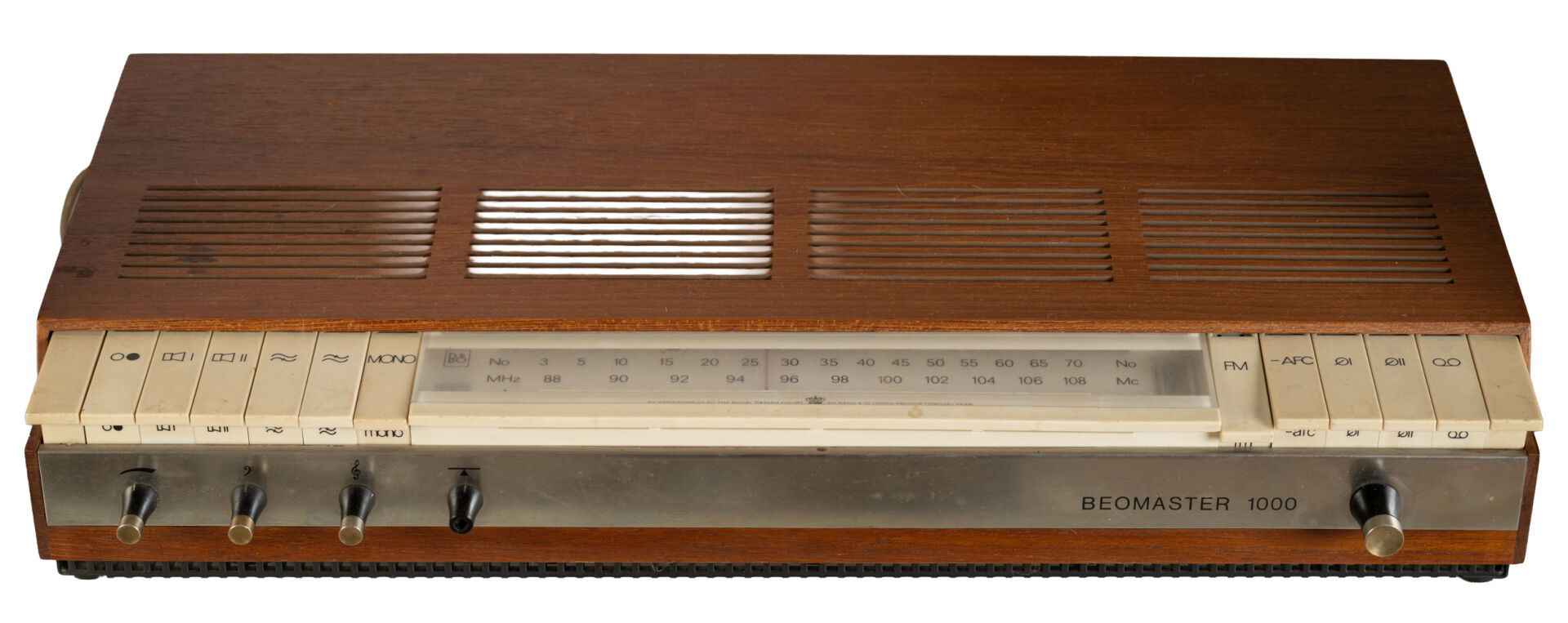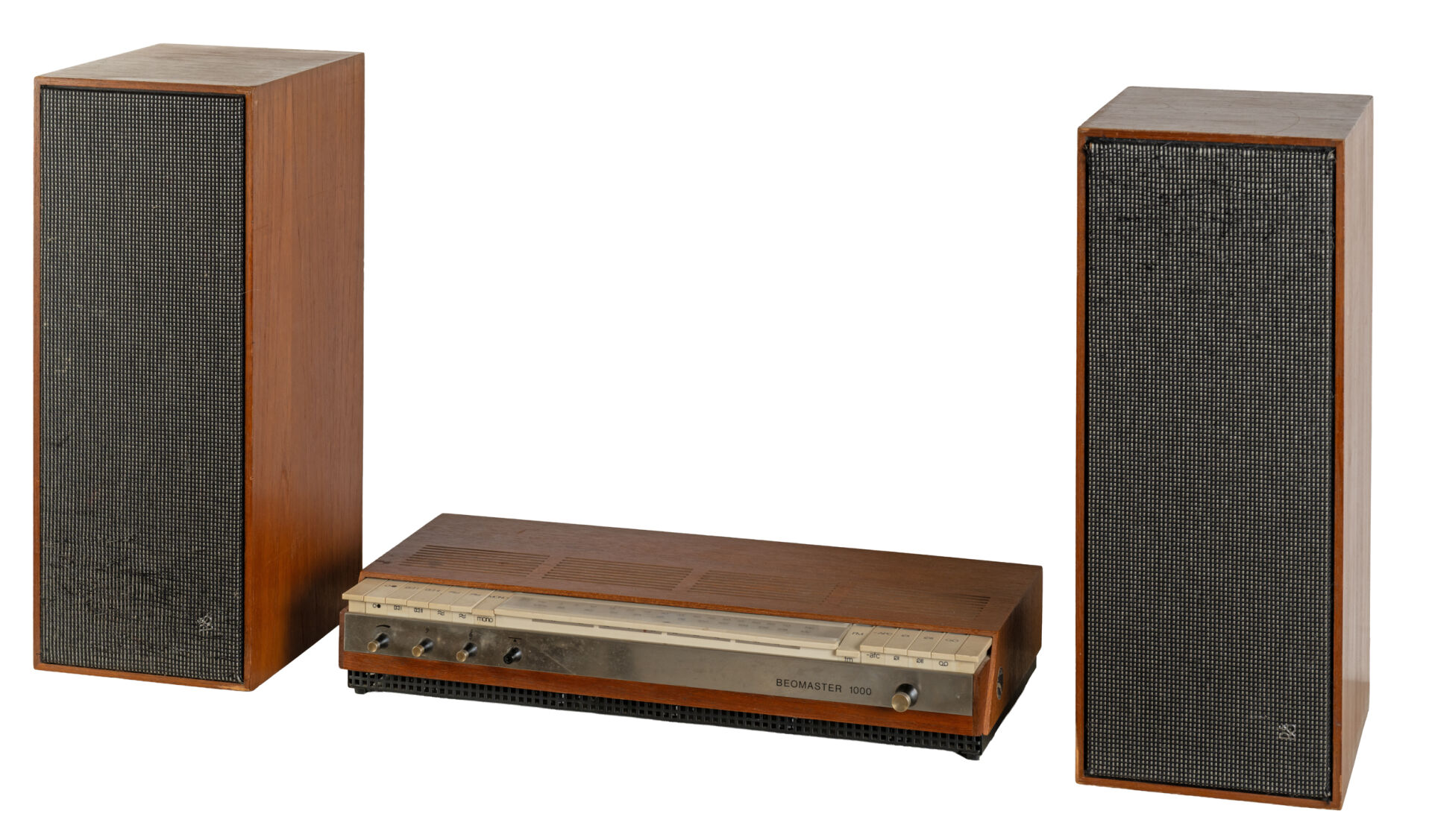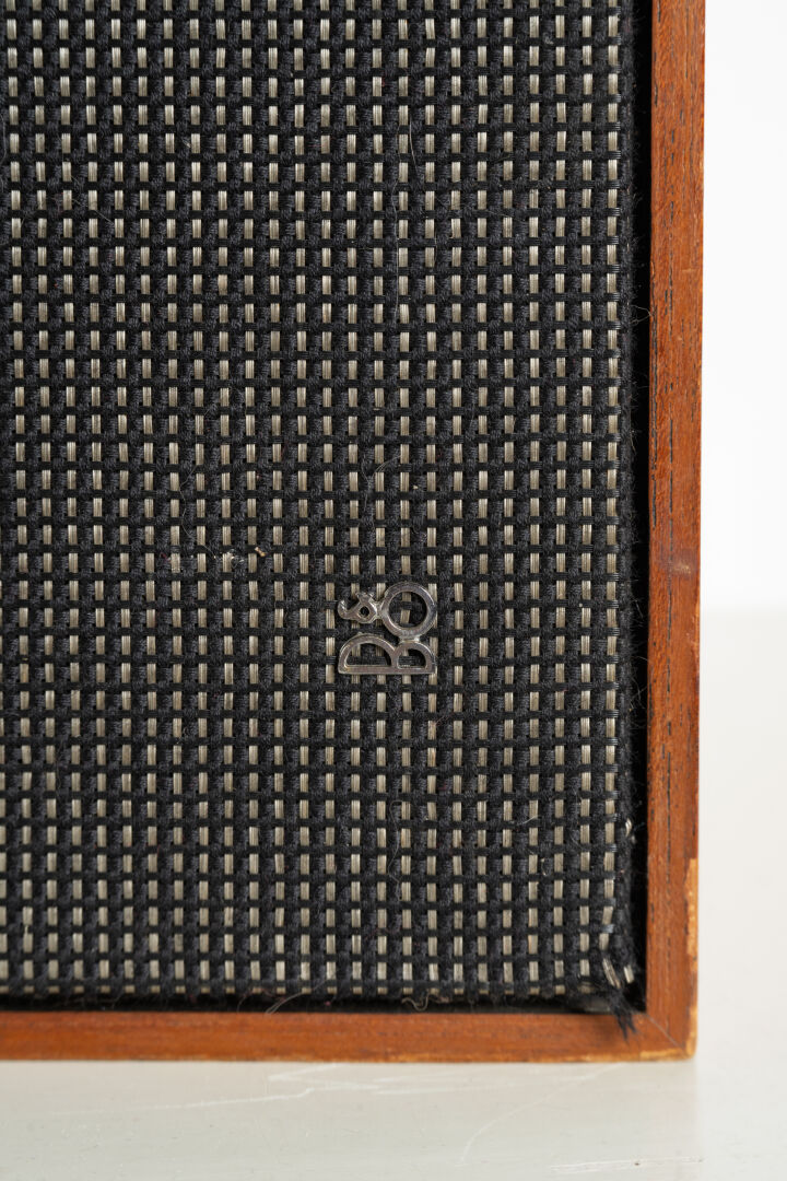 Jacob JENSEN (1926-2015) pour Bang & Olufsen. Enfilade pour matériel HIFI. Vers 1970. On y joint un ampli Bang & Olufsen modèle Beomaster 1000 et une paire d'enceintes. H : 61 cm ; L : 119 cm ; l : 37 cm Né en 1926 à Copenhague, au Danemark, Jacob Jensen quitte l'école à treize ans pour suivre une formation de tapissier. Lassé, le jeune Jensen commence à expérimenter des designs d'objets du quotidien et il s'inscrit à la fin des années 1940, à l'École danoise des Arts et Métiers. En 1951, il commence à travailler pour Bernadotte & Bjørn, le premier studio de design industriel du Danemark. Il y crée des ustensiles. Peu après avoir créé son propre studio en 1958, il commence à travailler pour Bang & Olufsen qui deviendra, pendant les trois décennies où il va dessiner des modèles pour eux, le leader du design et du son.