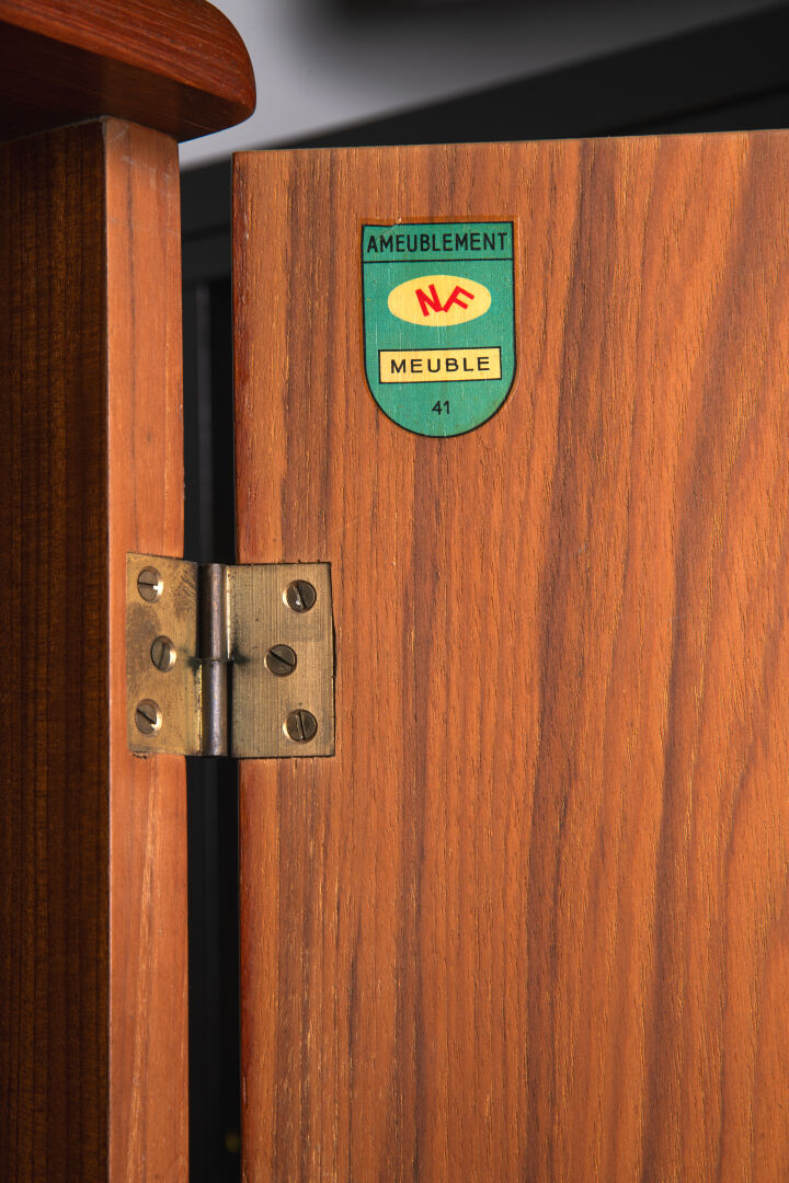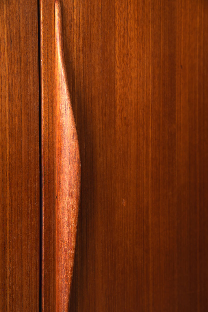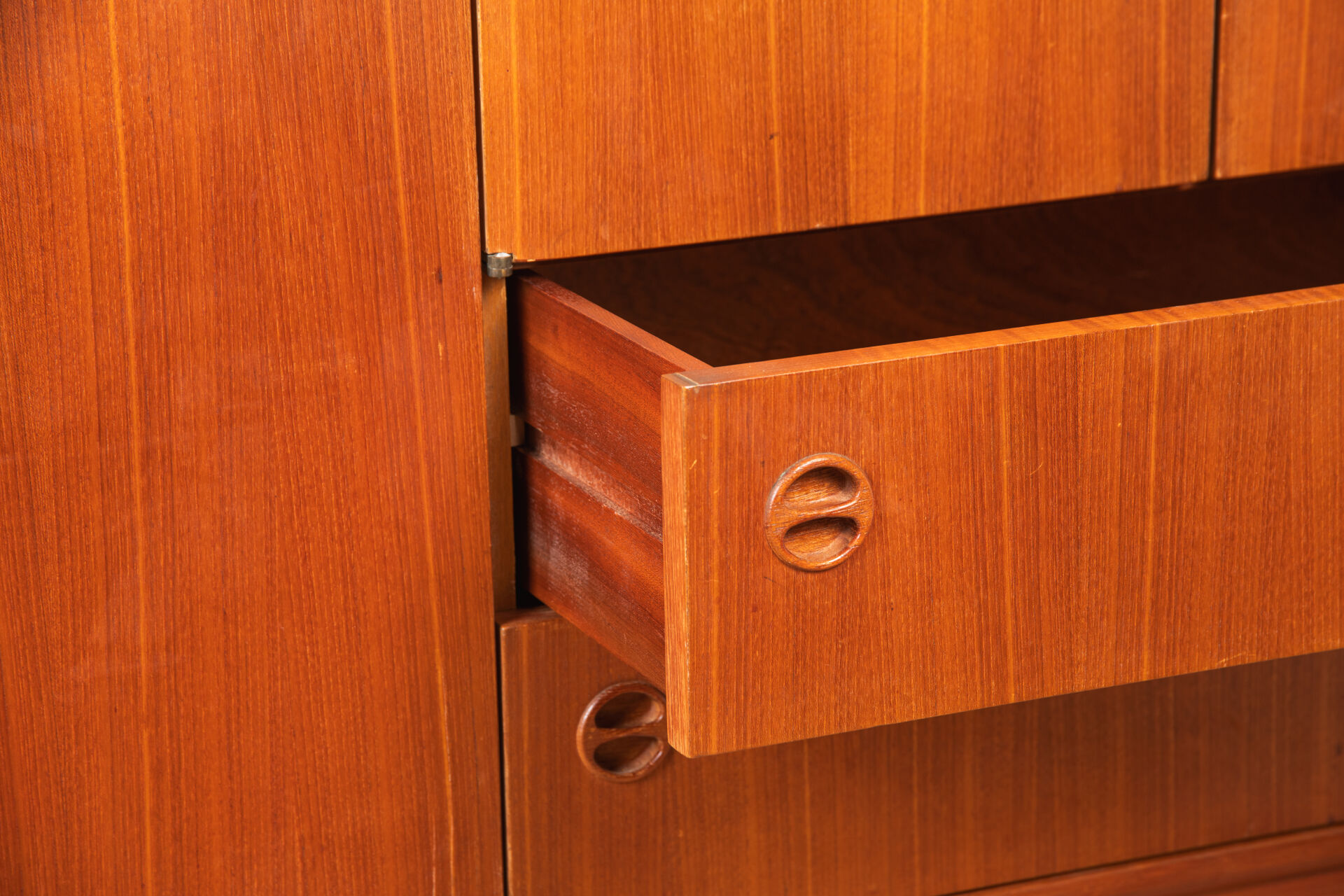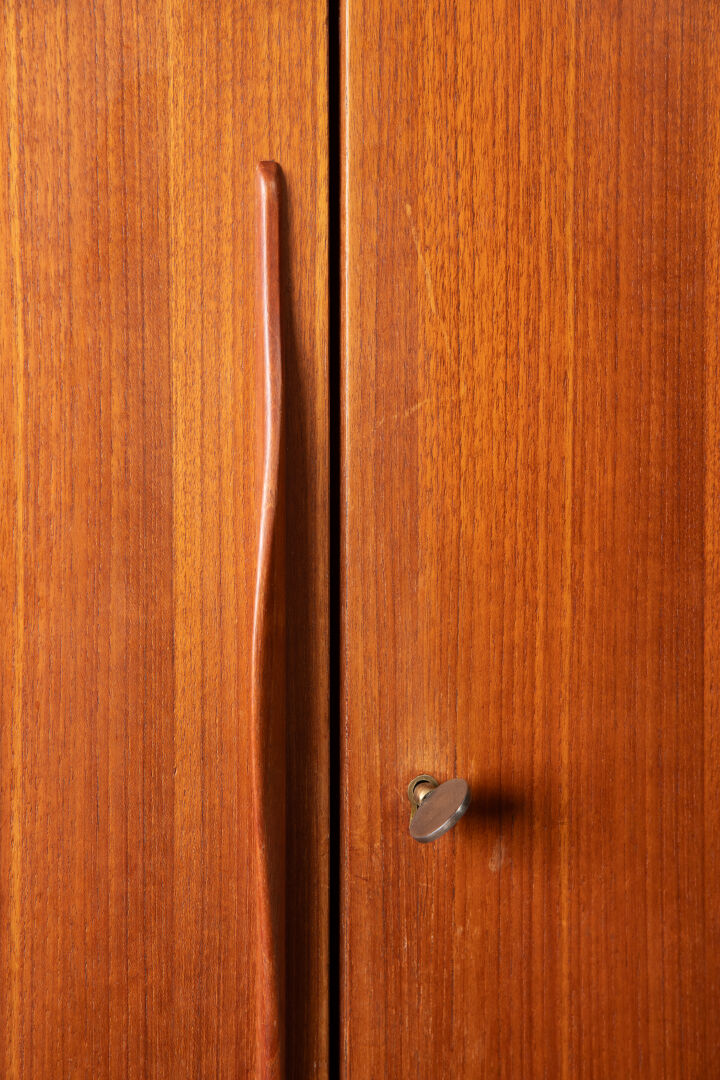 Scandinavie. Armoire penderie en teck ouvrant à quatre vantaux et deux tiroirs. Vers 1950-1960. Rayures sur les côtés. H : 173 cm : L : 177 cm l : 42 cm