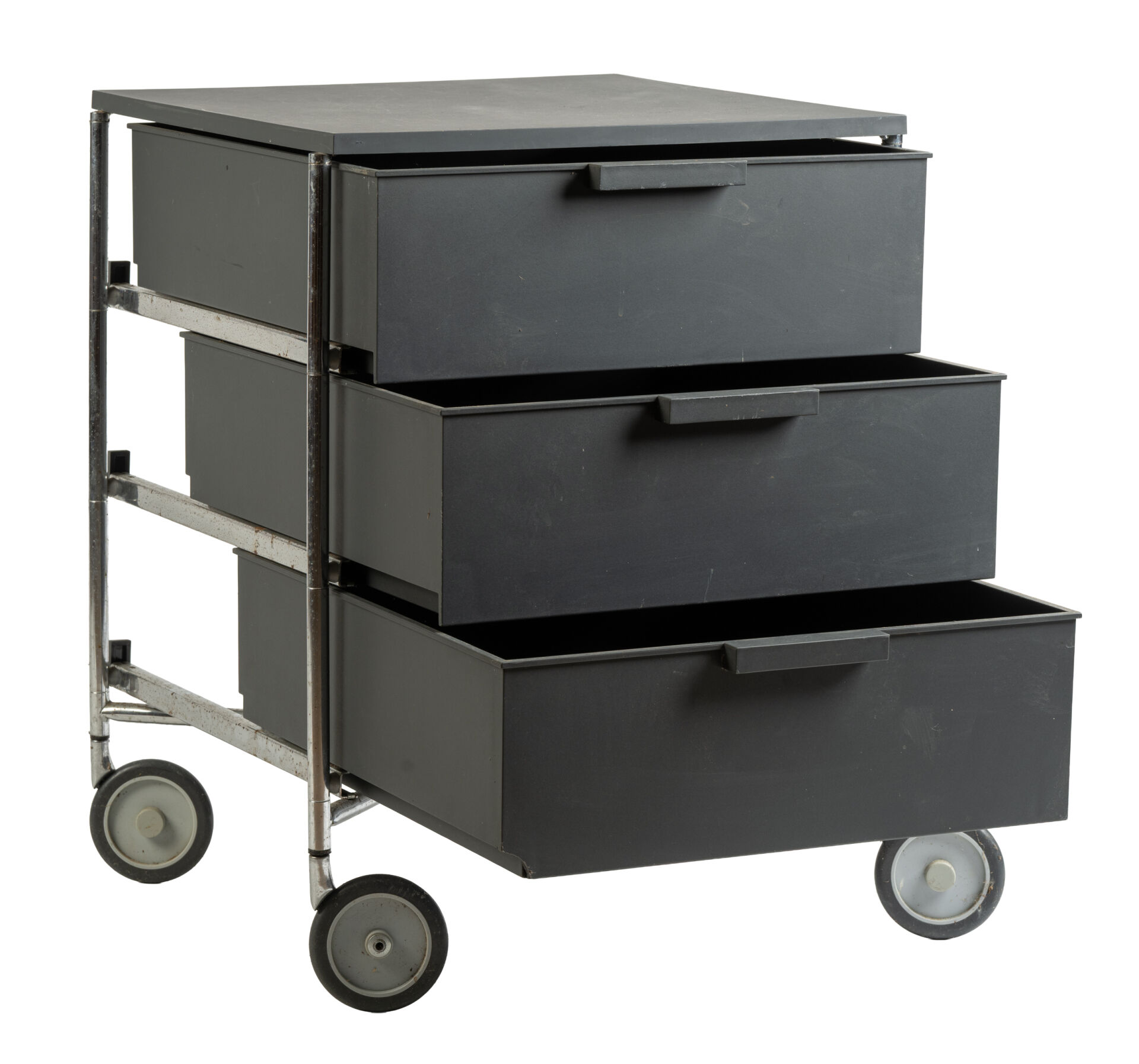 Kartell. Meuble de rangement "Mobil" ouvrant à trois tiroirs sur roulettes. H : 63,5 cm ; L : 47,5 cm ; l : 46 cm
