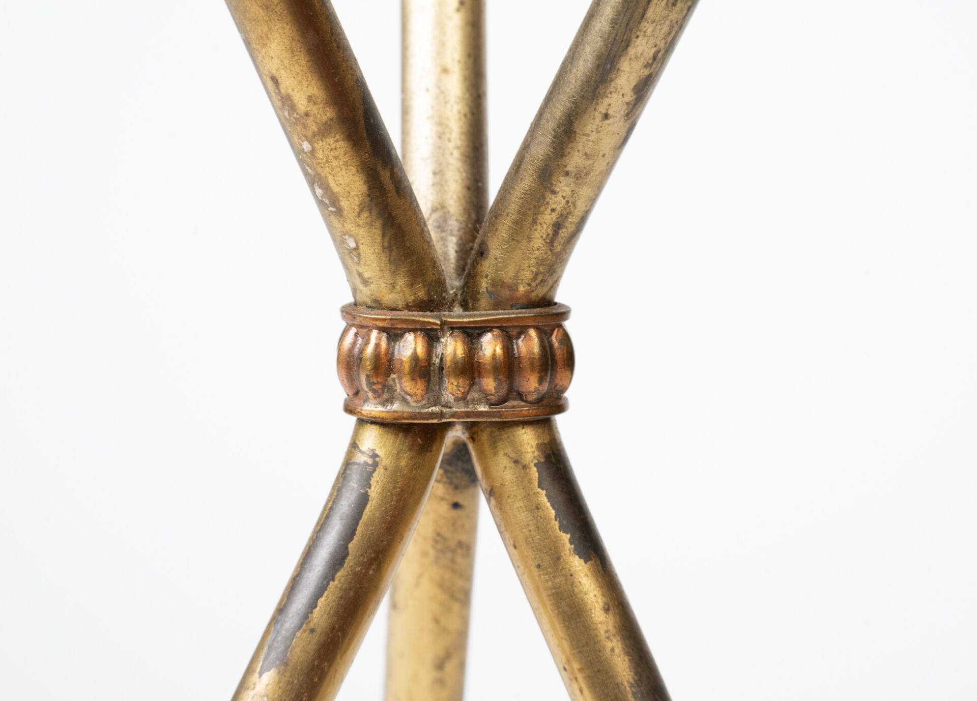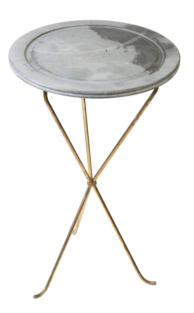 Dans le goût de Jean-Michel FRANK. Guéridon avec piètement en laiton doré et dessus en marbre gris. Vers 1940. H : 66 cm ; D : 41 cm