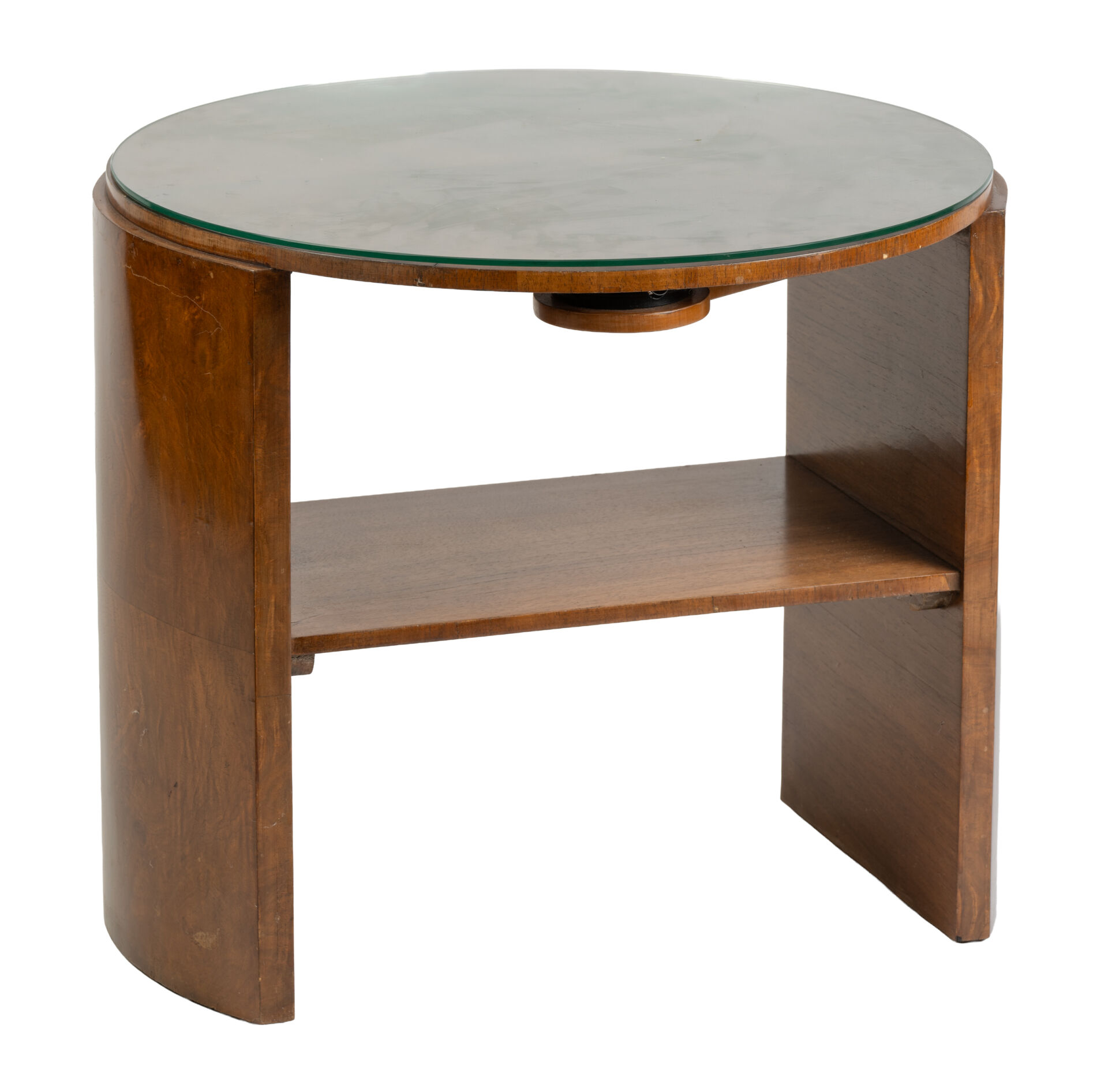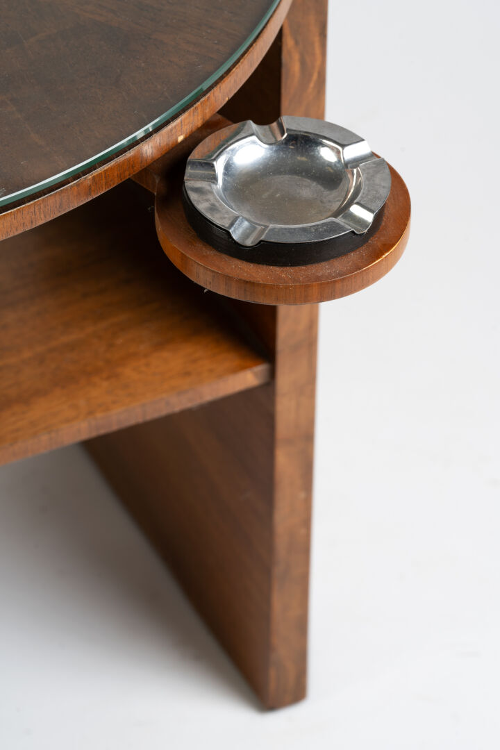 Bout de canapé avec cendrier en bois. Art Déco. H : 55 cm ; D : 60.5 cm