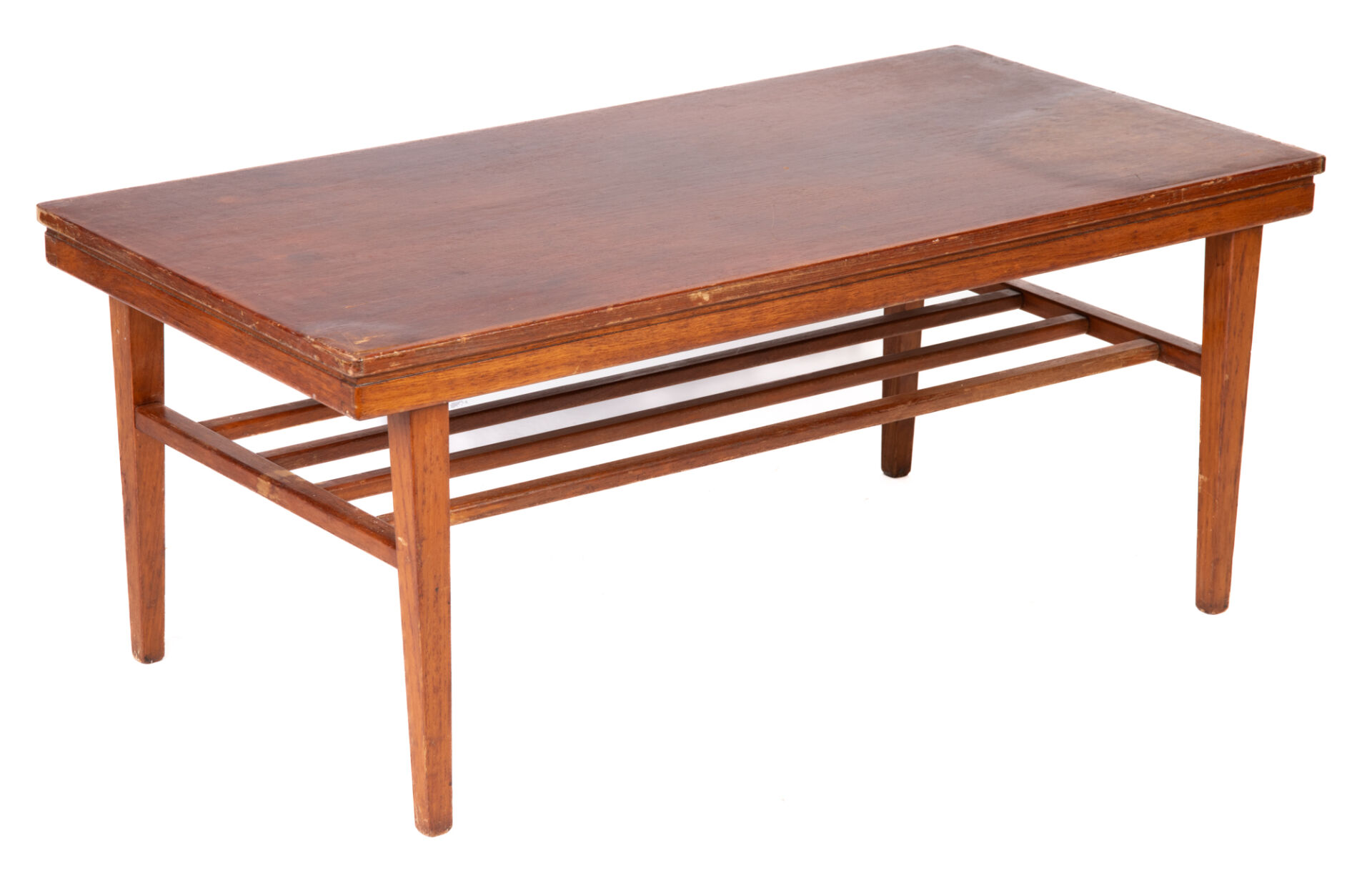 Dans le goût scandinave. Table basse en teck. H : 49 cm ; L : 93 cm ; l : 46 cm