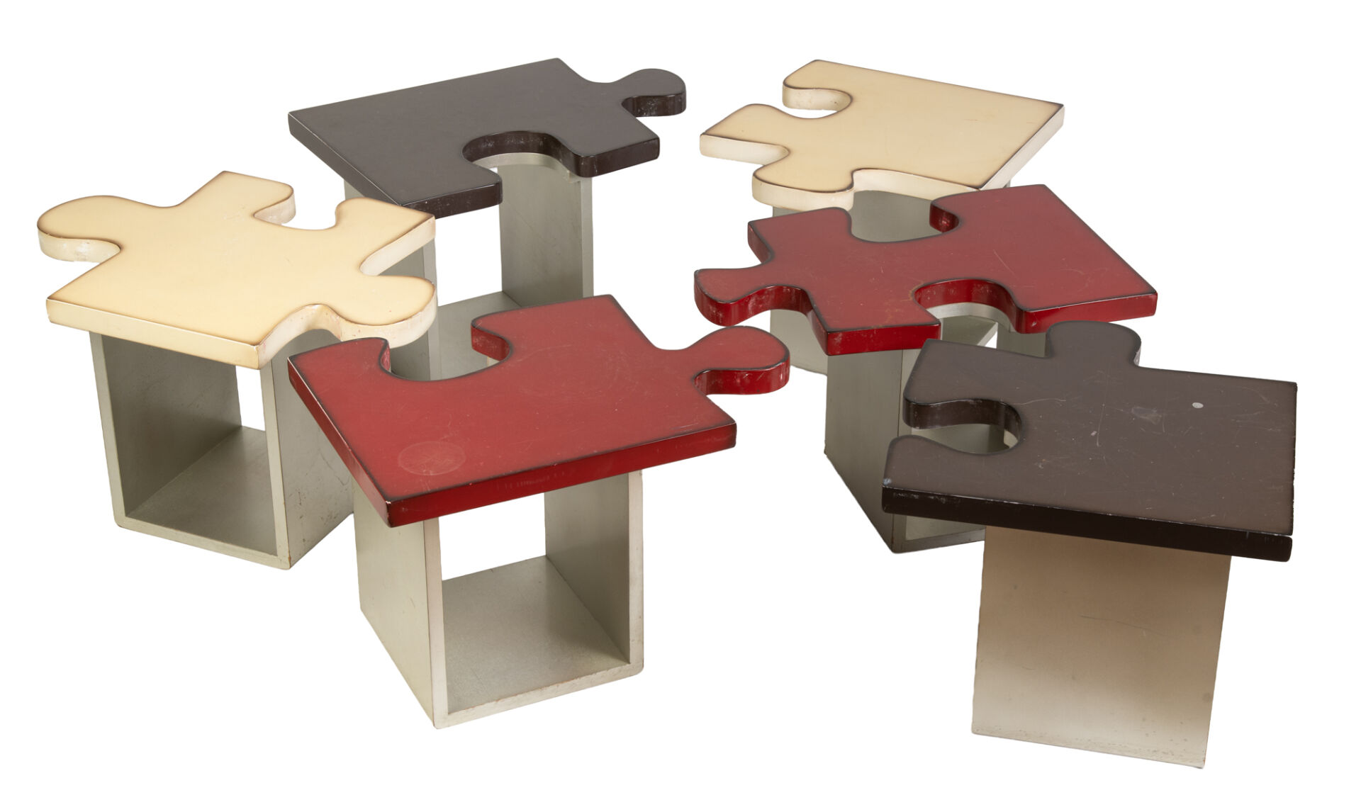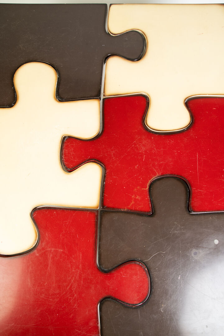 Table basse "Puzzle" avec six éléments amovibles. Vers 1970. H : 38 cm ; L : 110 cm ; l : 90 cm