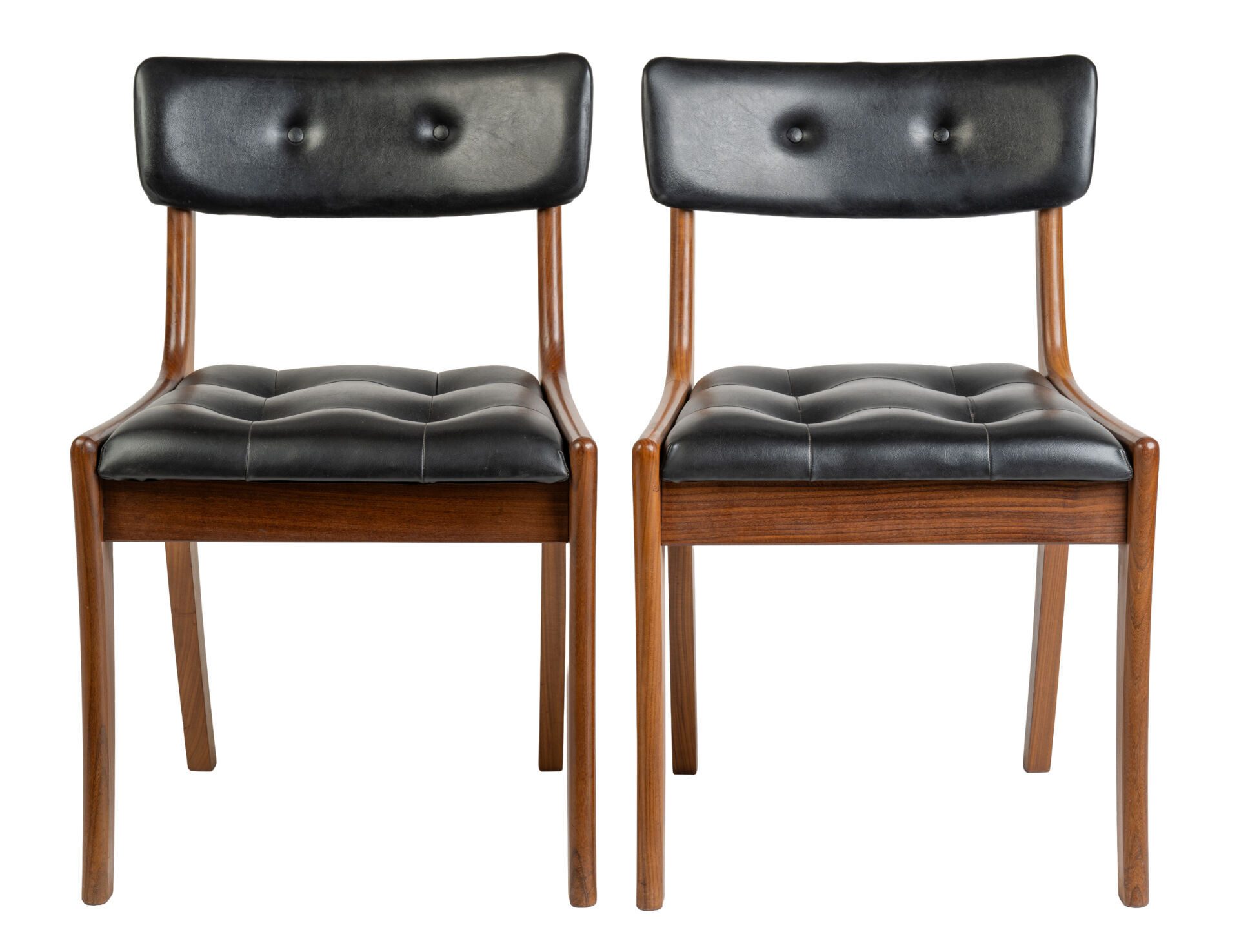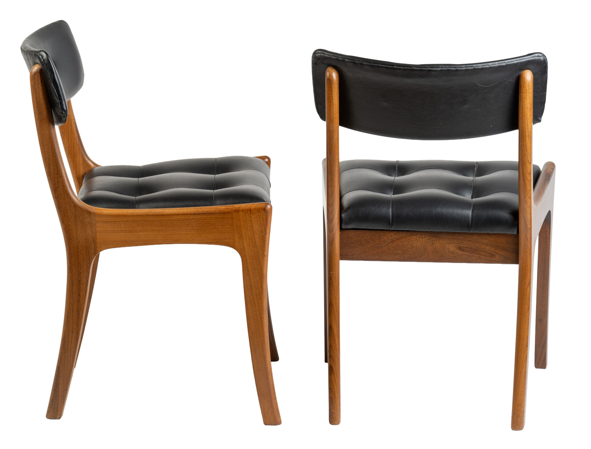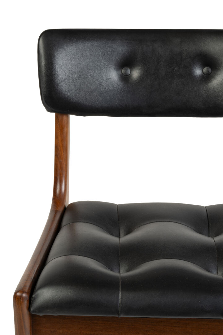 Danemark. Suite de quatre chaises en bois et garniture en similicuir noir. Vers 1960. H : 73 cm ; L : 48 cm ; l : 46 cm