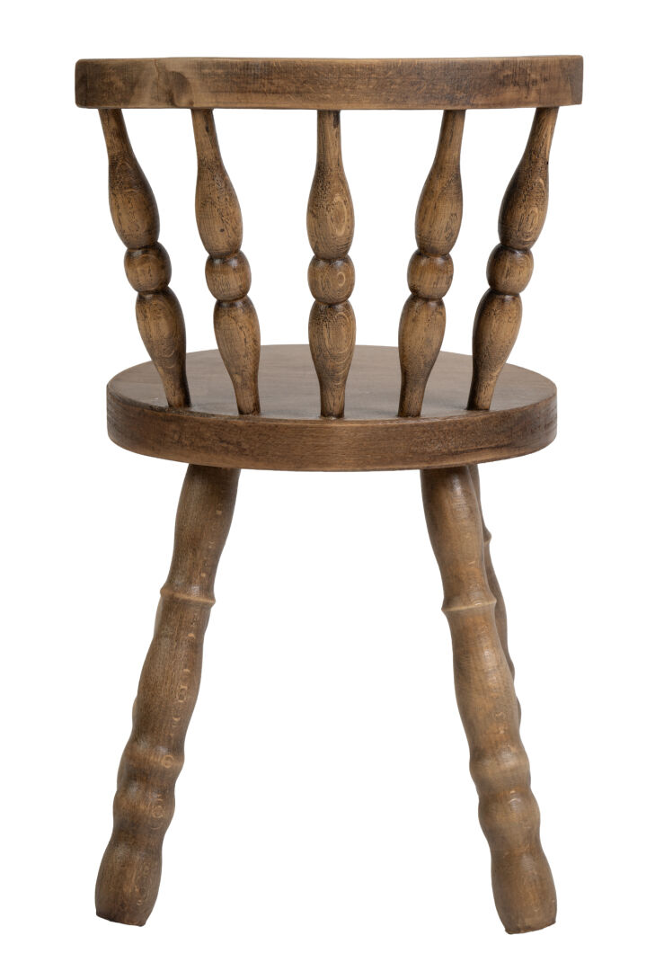Chaise pour enfant en bois tourné dans le goût brutaliste. H : 45 cm ; L : 23.5 cm l : 26 cm