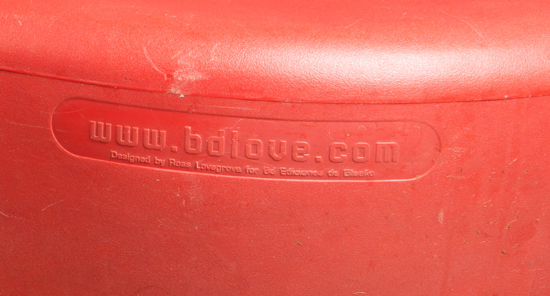 Ross LOVEGROVE (1958) pour BD Barcelona. Banc "BDlove" en plastique rouge sur roulettes. Possibilité de le remplir avec de l'eau ou du sable pour lester. H: 46 cm ; L : 260 cm ; l : 120 cm