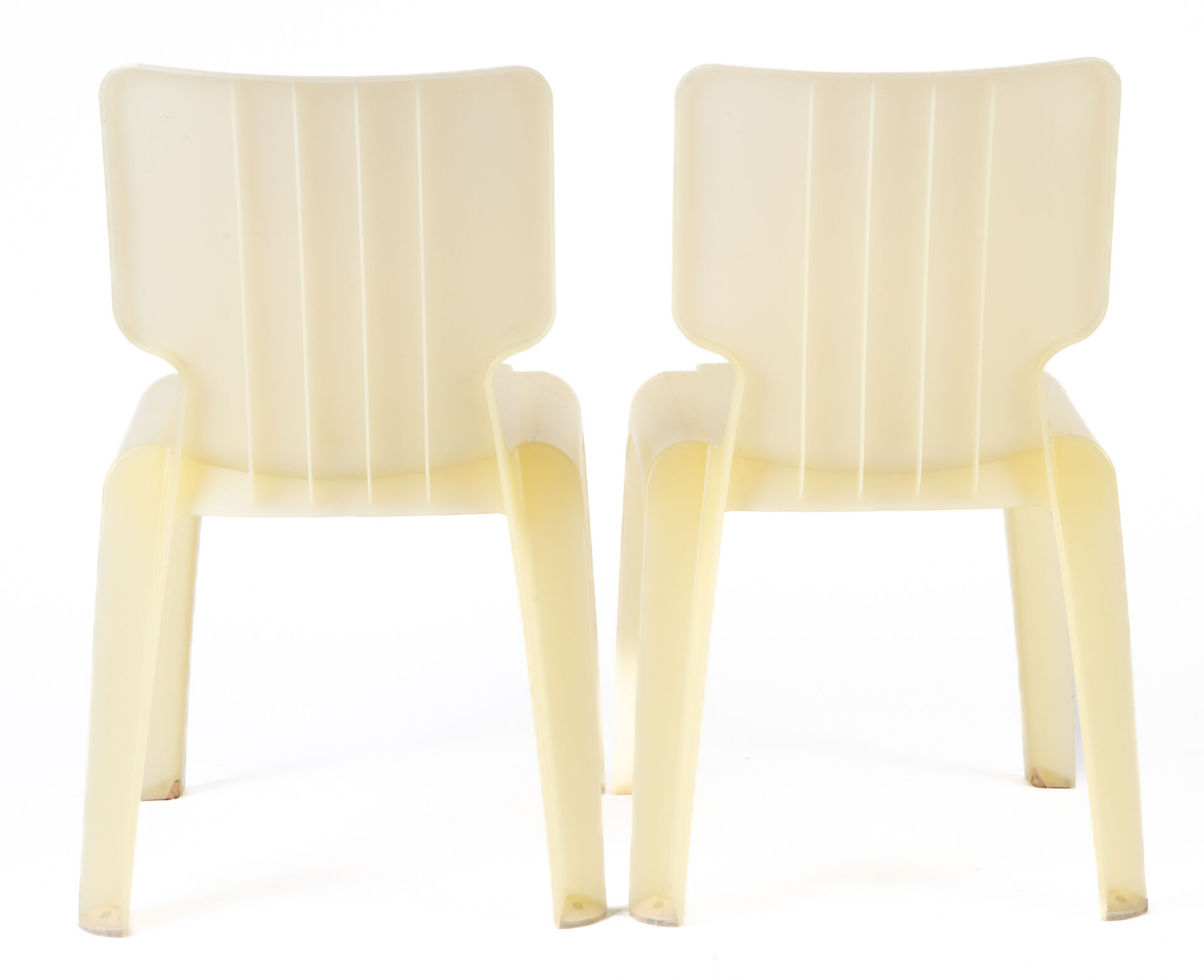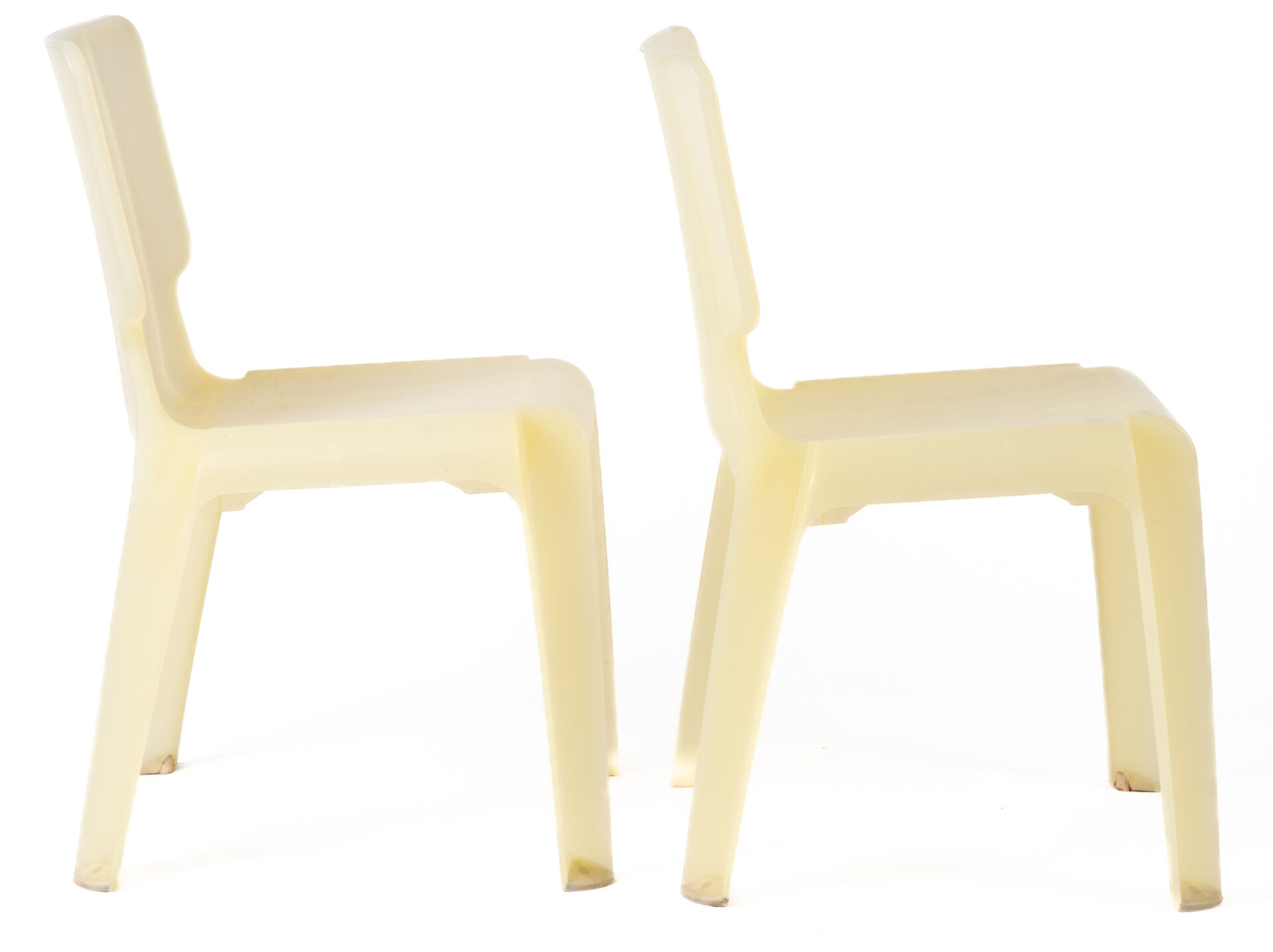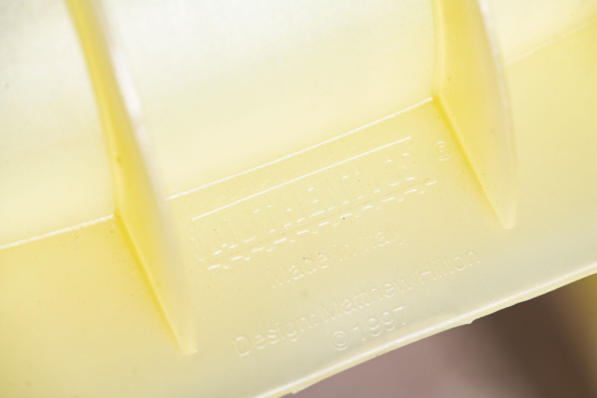 Matthew HILTON (1957) pour Authentics, Italie. Paire de chaises en plastique transparent jaune. Portent l'estampe sur l'assise. Vers 1990. H : 77 cm ; L : 50 cm ; l : 47 cm