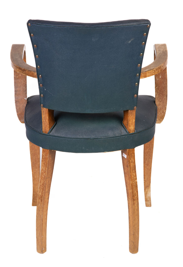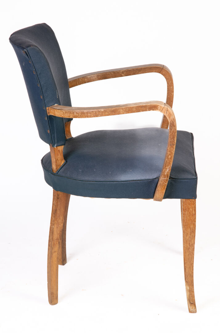 Fauteuil dit "bridge", garniture en simili cuir bleu. Vers 1950. H : 82 cm ; L : 56 cm ; l : 50 cm