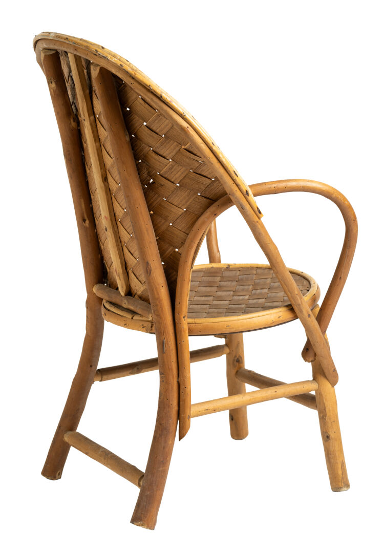 Fauteuil pour enfant avec structure en rotin et assise en écorce tressée de châtaignier. Vers 1970. H : 70 cm ; L : 43 cm ; l : 36.5 cm