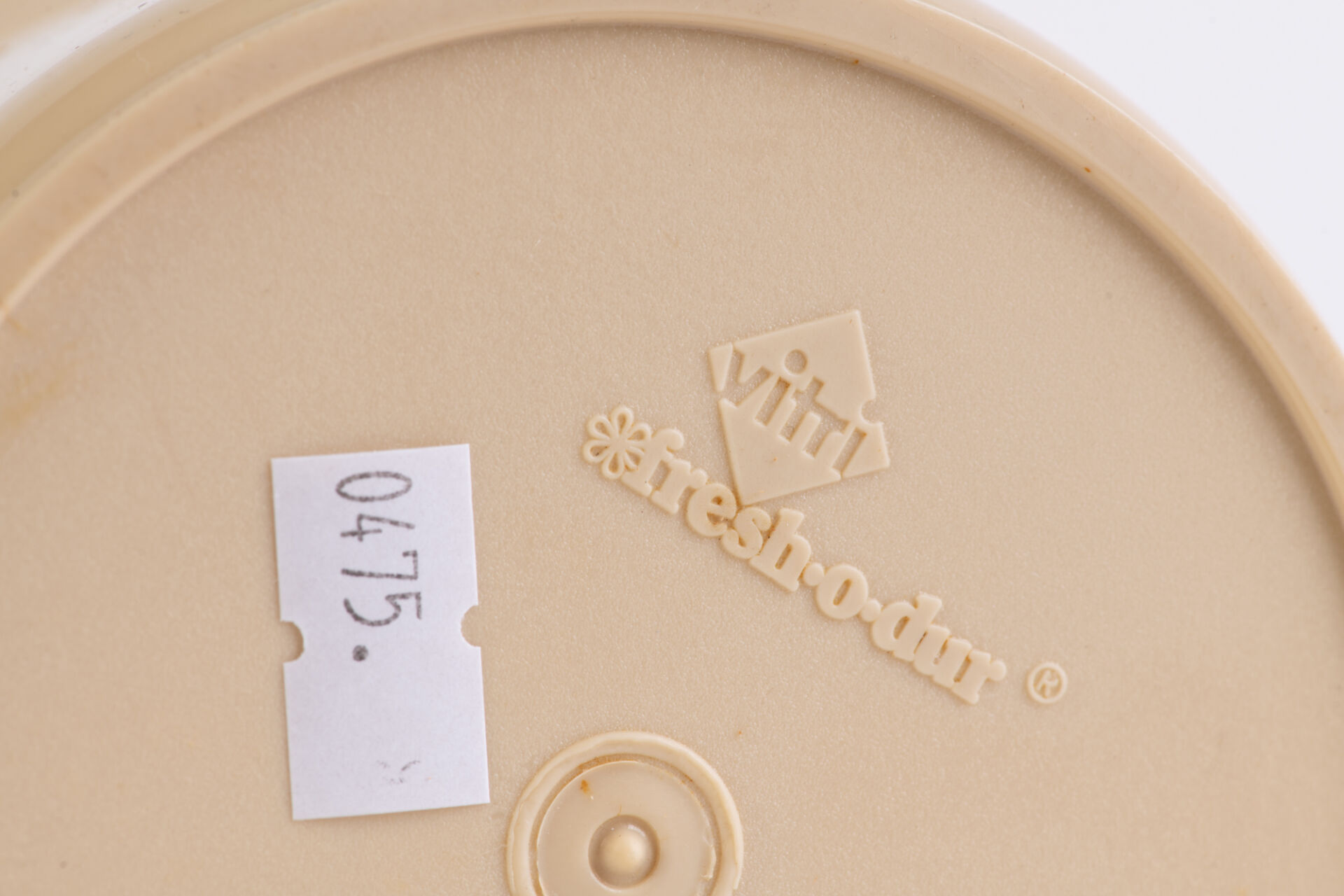 Vitri Fresh-o-dur. Verseuse en plastique écru. H : 14 cm ; D : 10,5 cm