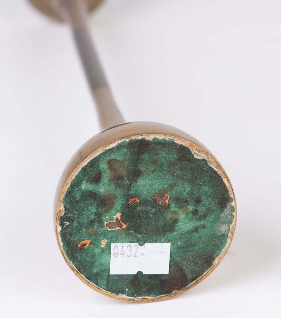 Important bougeoir moderniste en métal doré. H : 30,5 cm ; D : 6,2 cm