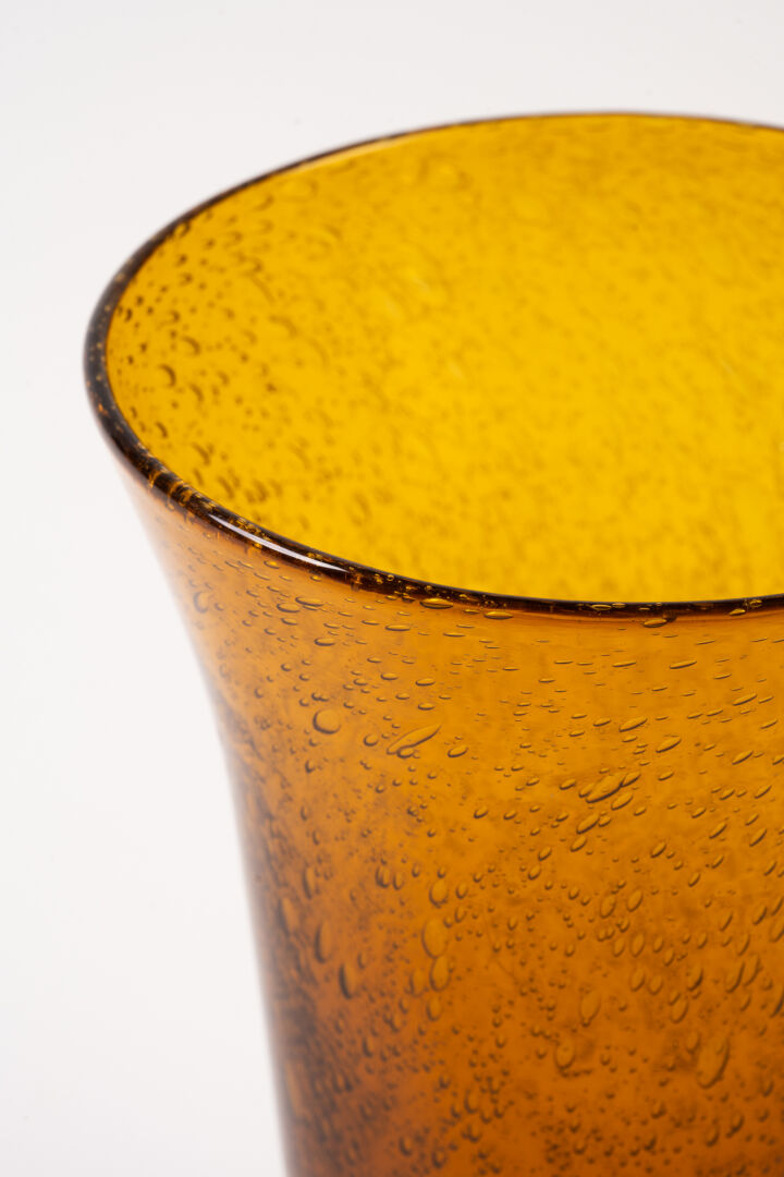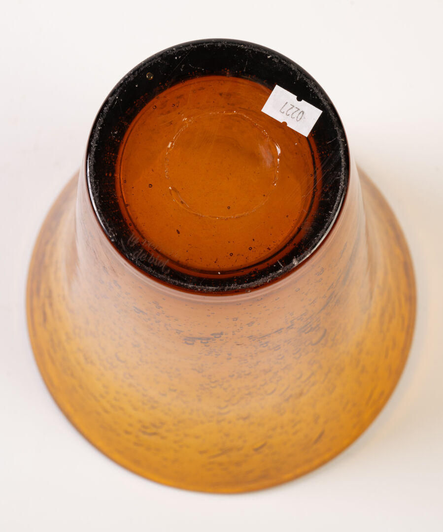 Verrerie de Biot. Vase en verre bullé et orangé. Vers 1970. Signé sous la base. H : 26 cm ; D : 18.5 cm