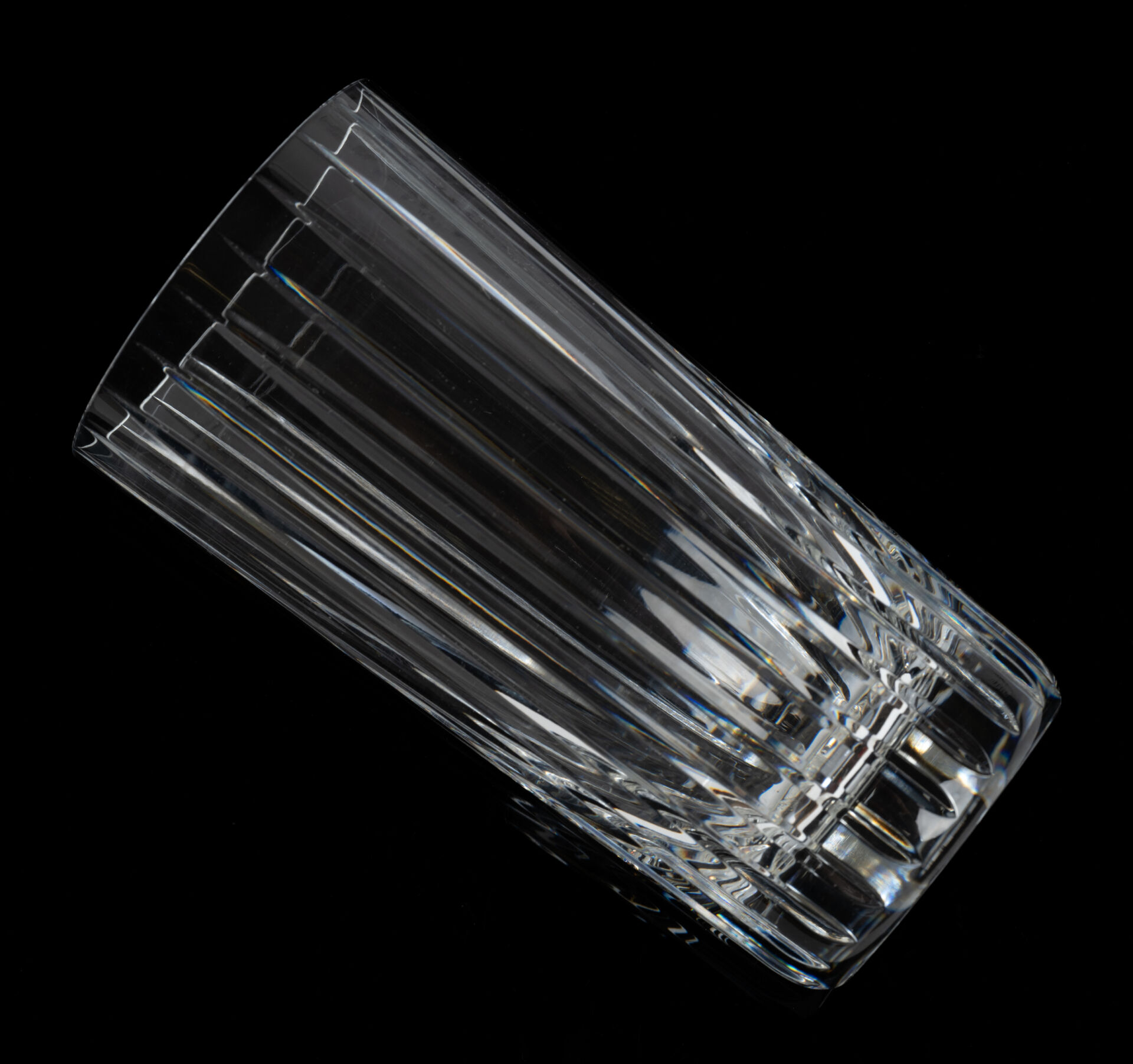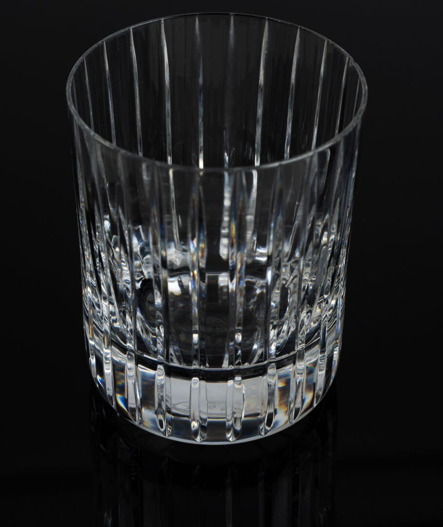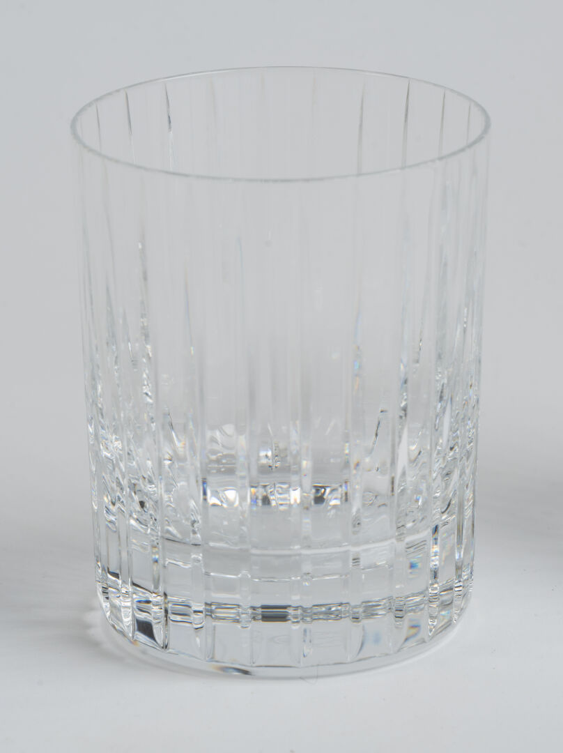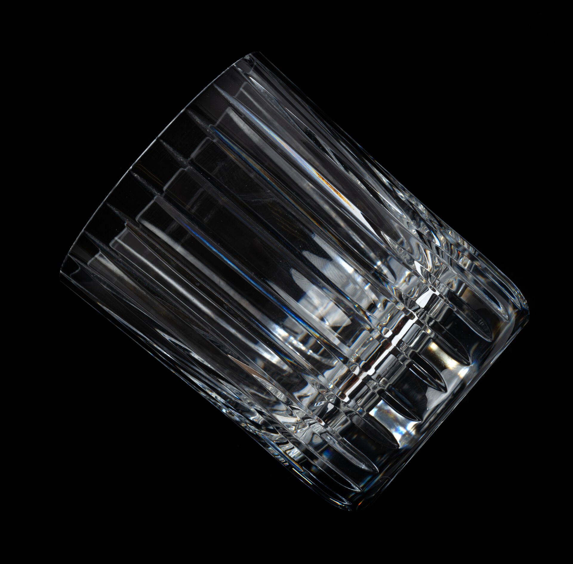 Baccarat. Service à apéritif comprenant une carafe avec bouchon, cinq verres hauts et sept gobelets. Ébréchures sur trois gobelets.
