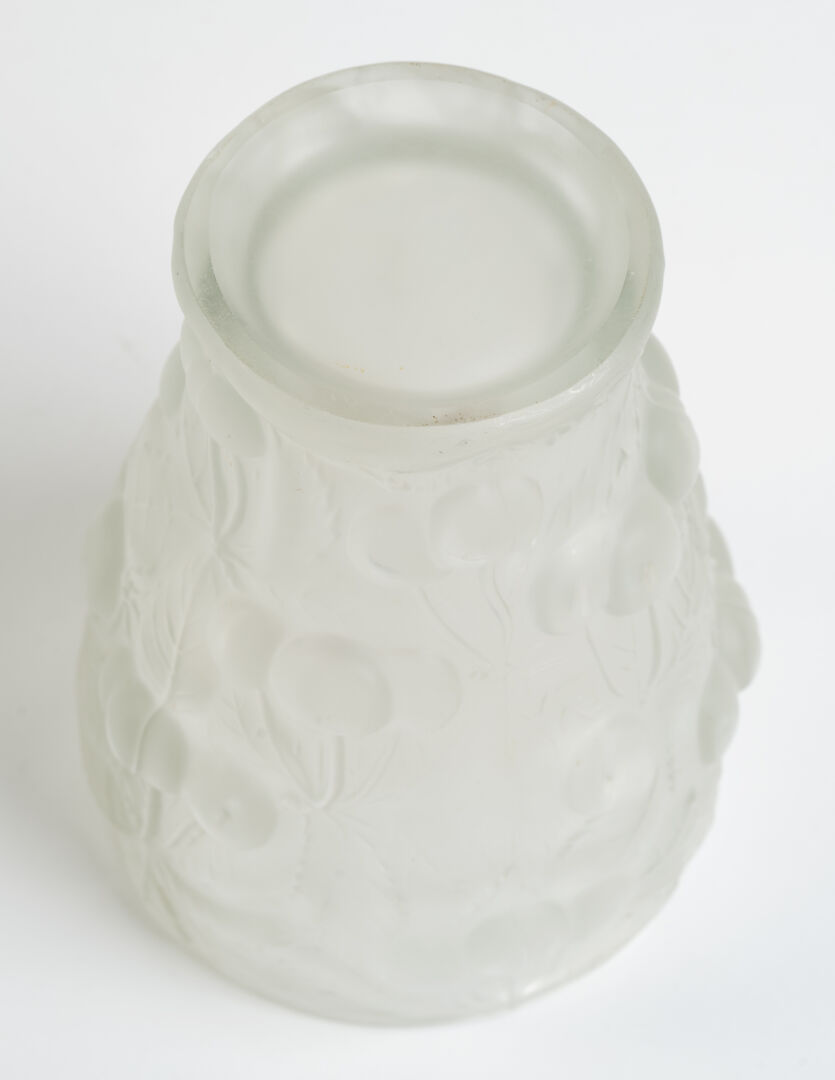 Josef INWALD (1837-1906), Tchécoslovaquie. Vase à décor de cerises en verre pressé et moulé. H :18, 5 cm ; D : 13 cm