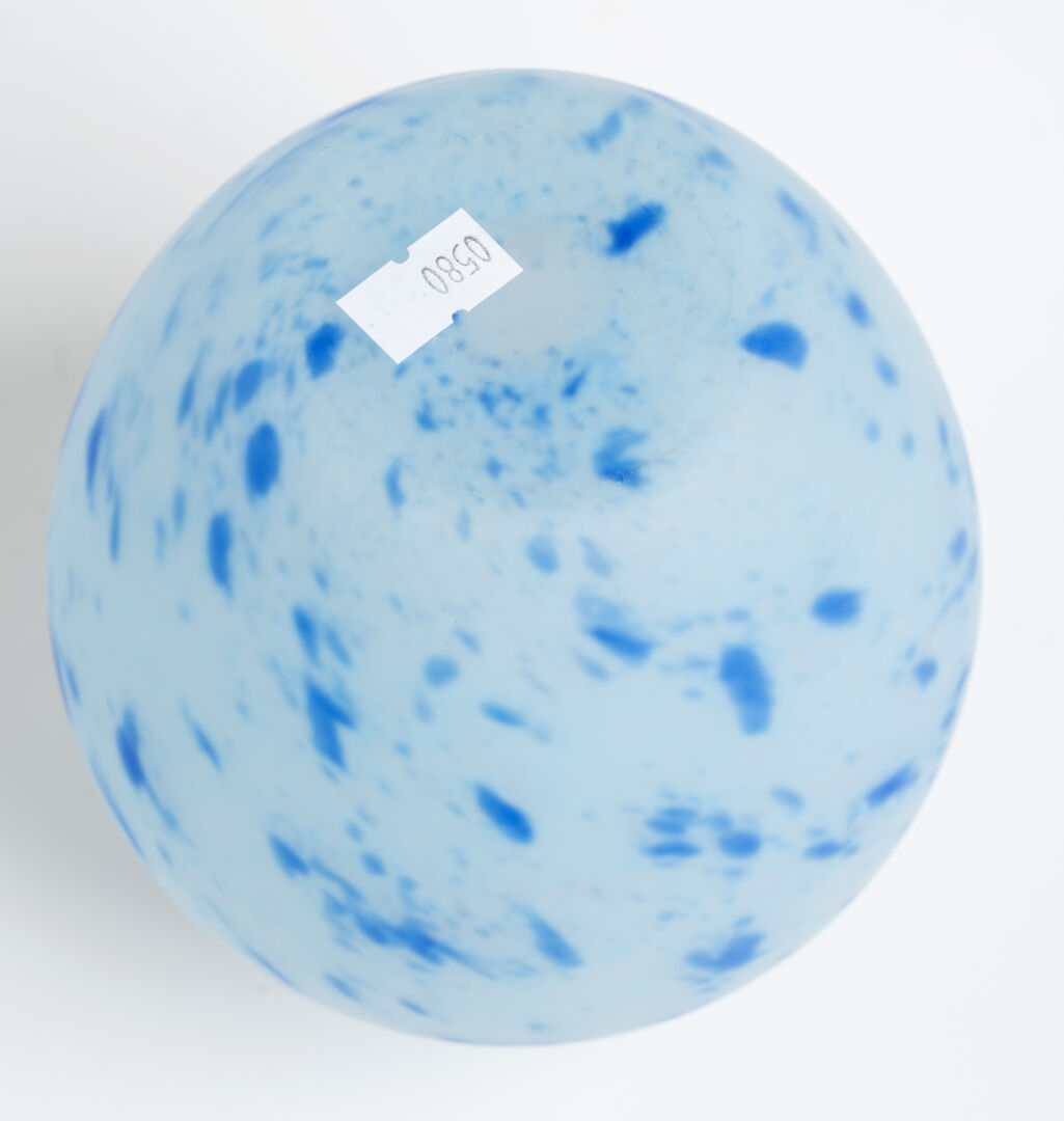 Vase en verre bleu moucheté marmoréen. H : 15 cm ; D : 13 cm