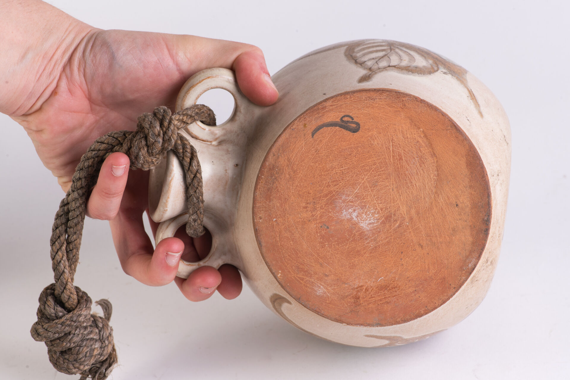 Gargoulette en grès émaillée avec cordelette de suspension. Monogrammée "S". XXème. H : 16 cm ; D : 12 cm