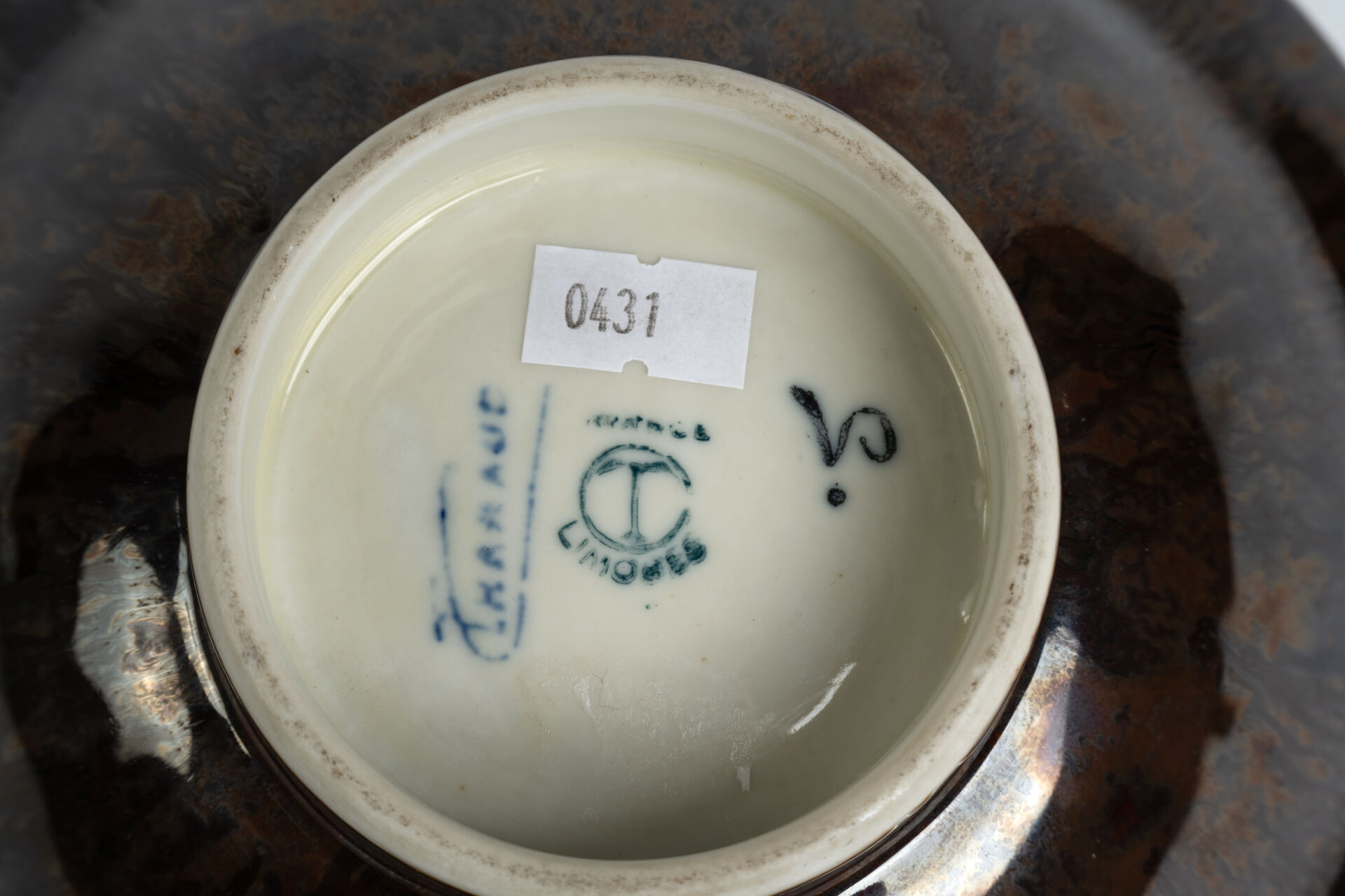 Camille THARAUD (1878-1956), Limoges. Coupe sur pied en porcelaine émaillée H : 7 cm ; D : 19 cm