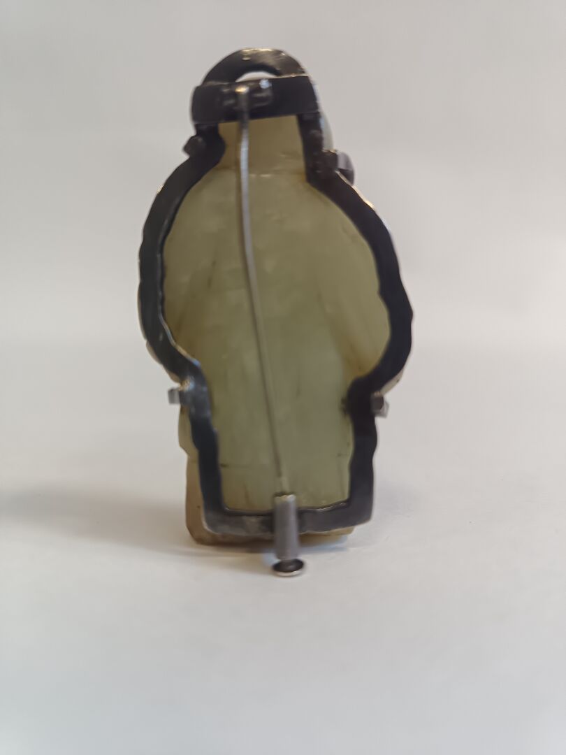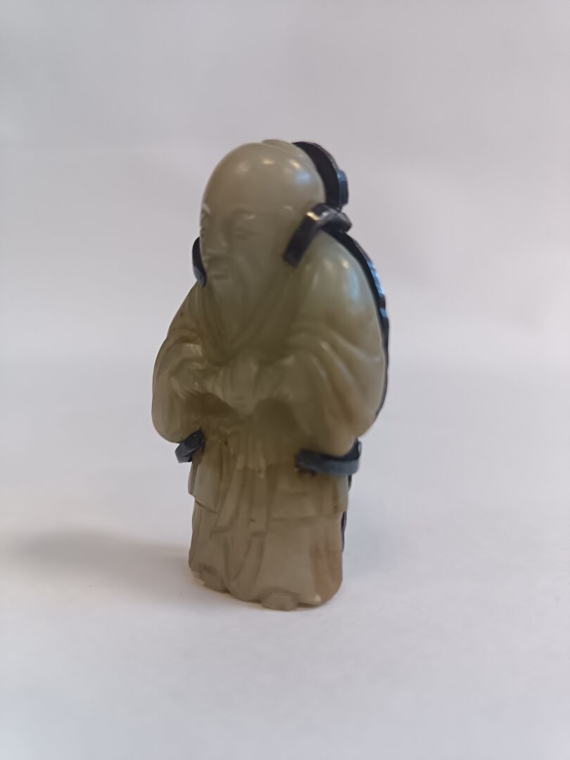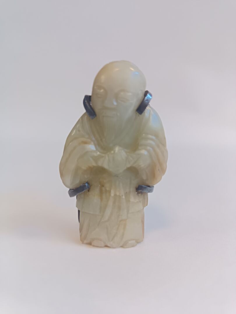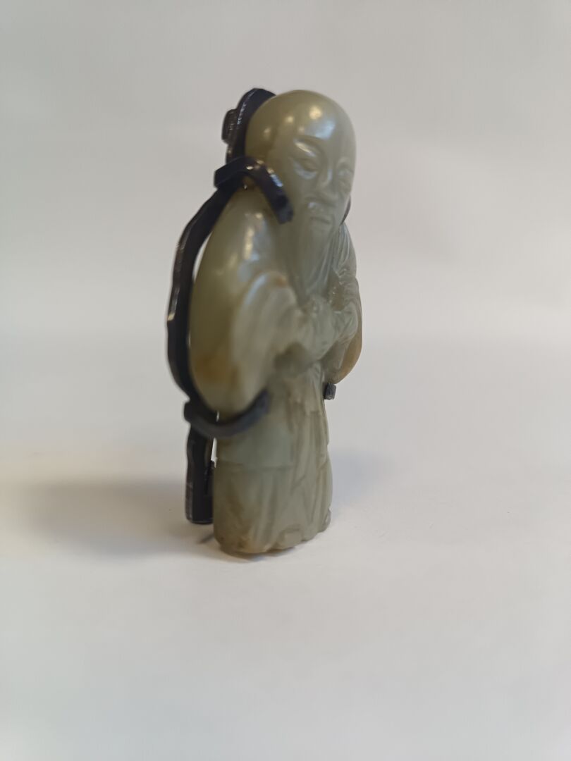 Chine. Broche en jade céladon représentant un sage. H : 5 cm ; L : 3 cm ; l : 1 cm