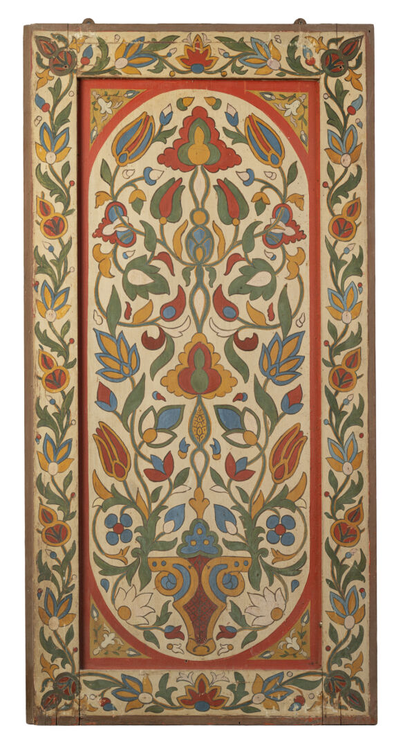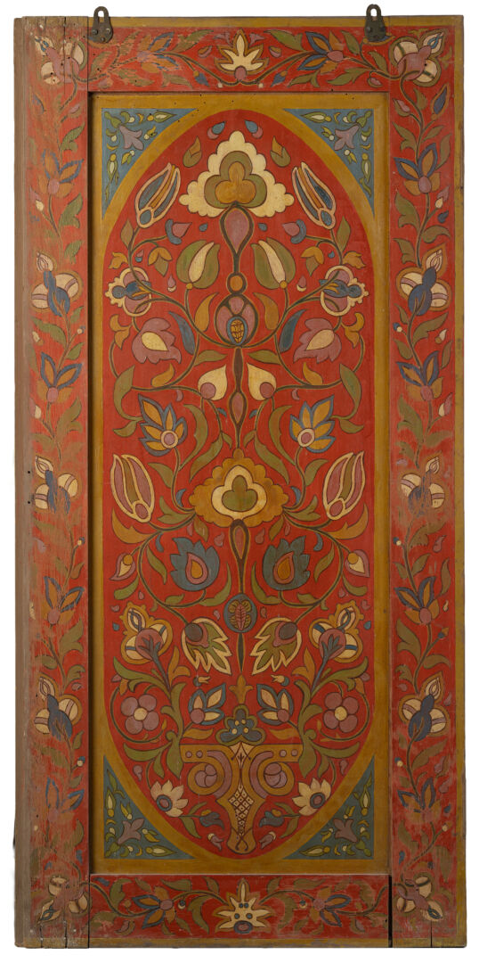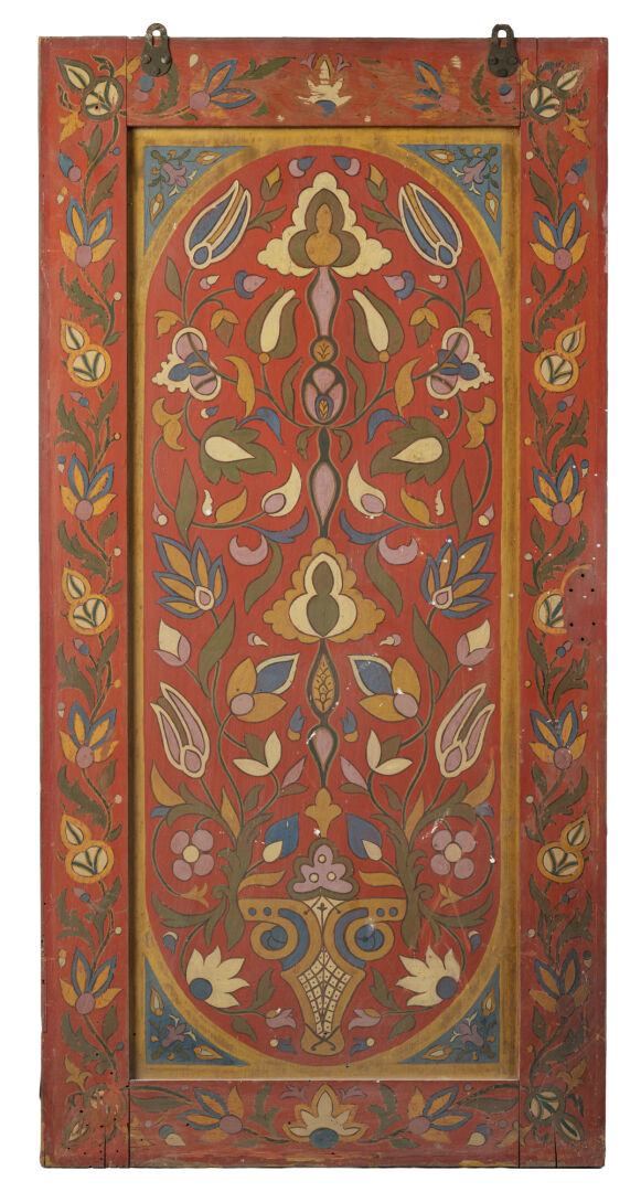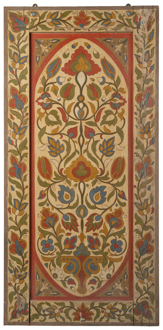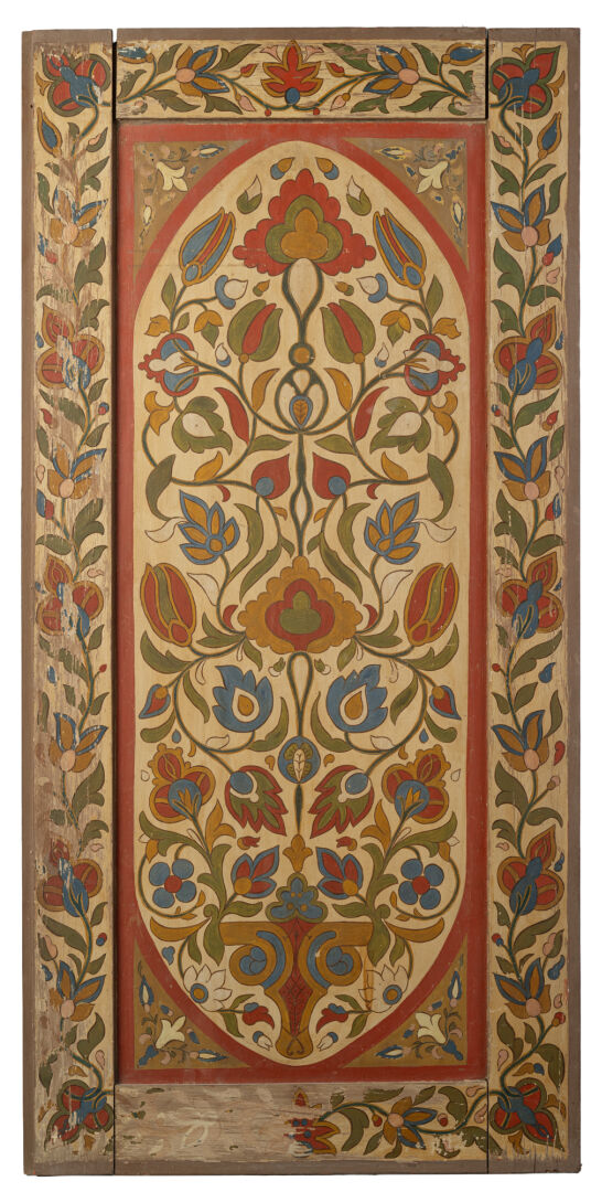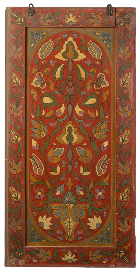 Suite de quatre panneaux peints à décors orientaux. 83 x 42 cm (deux) 99 x 48 cm (deux)