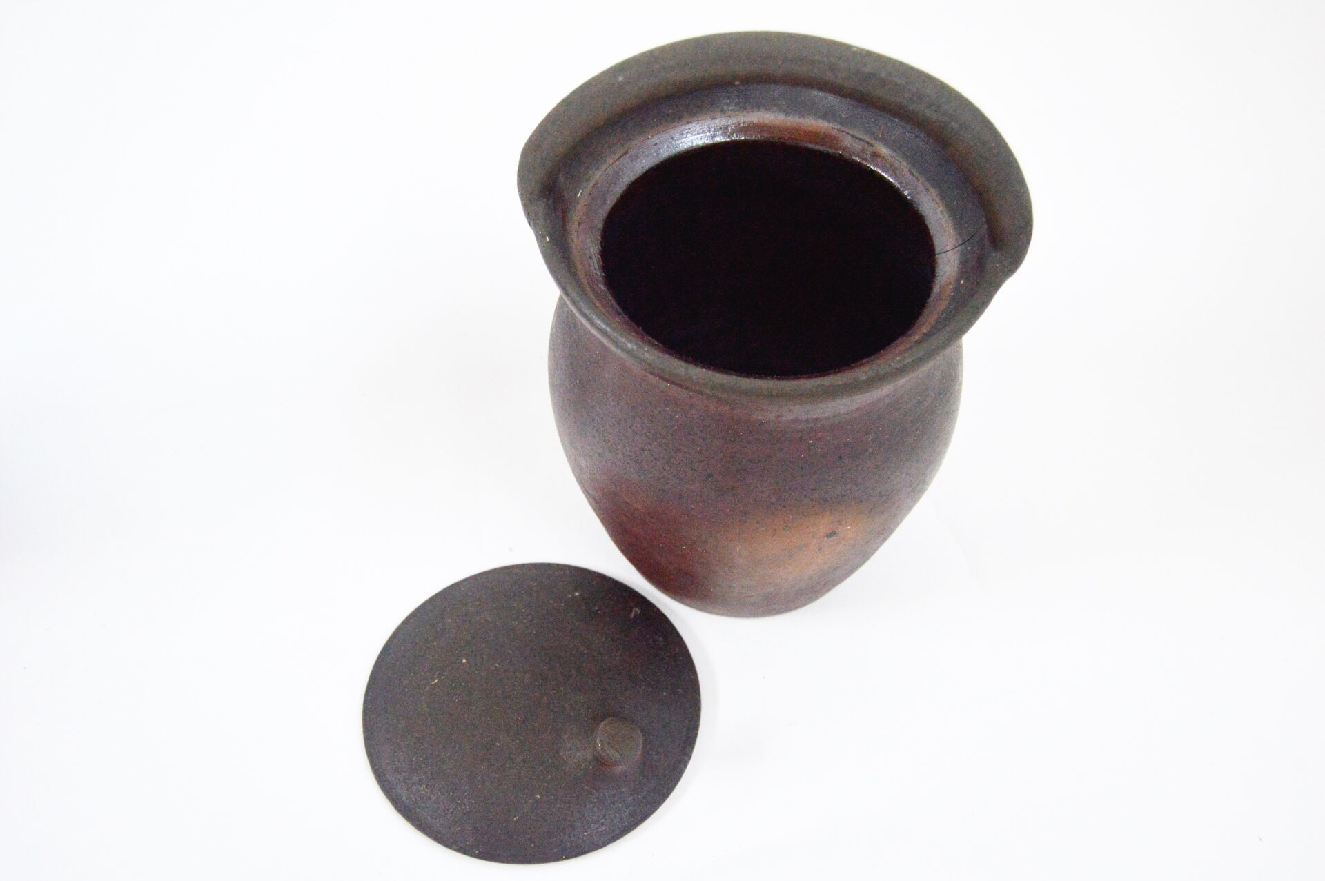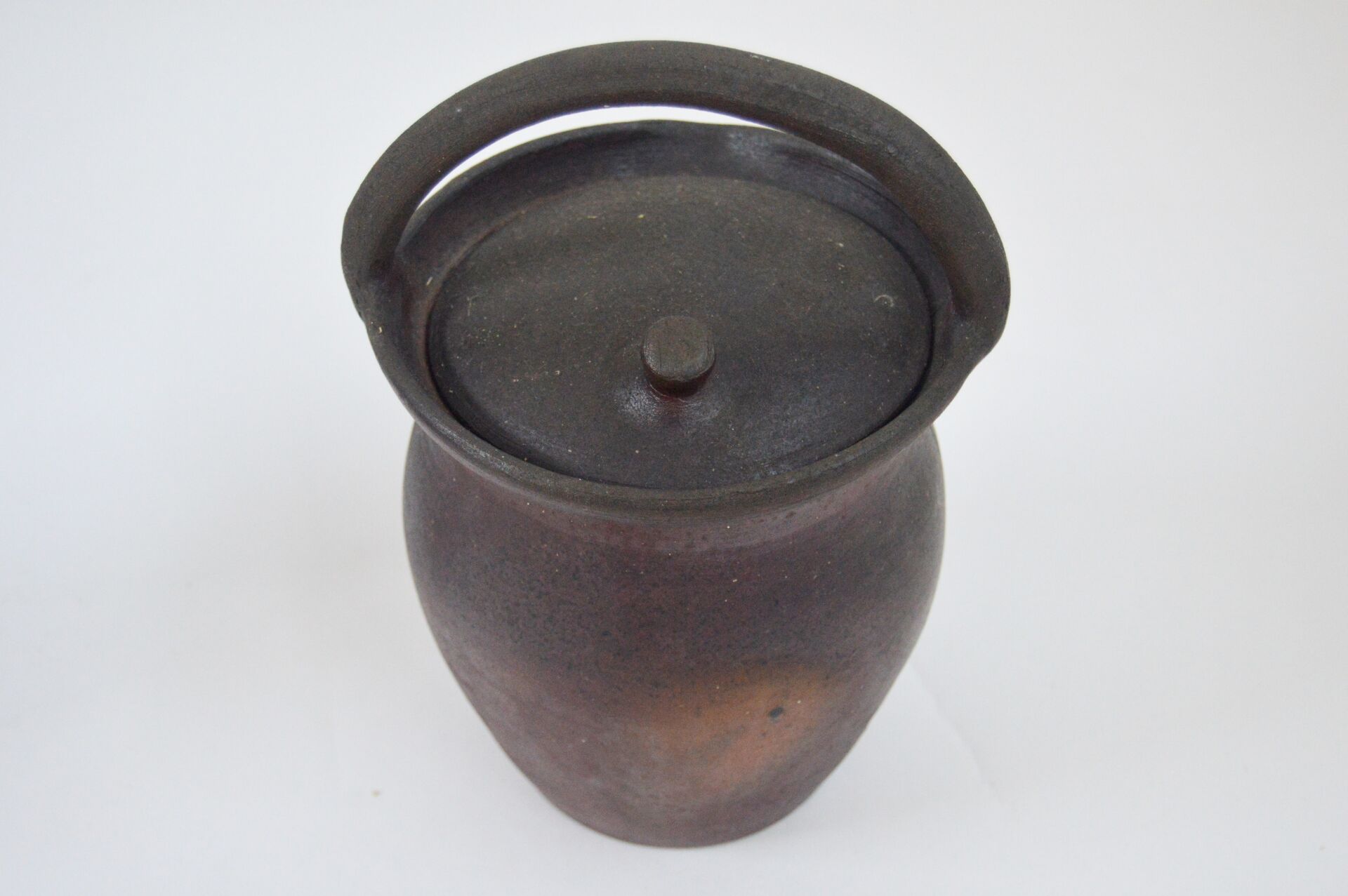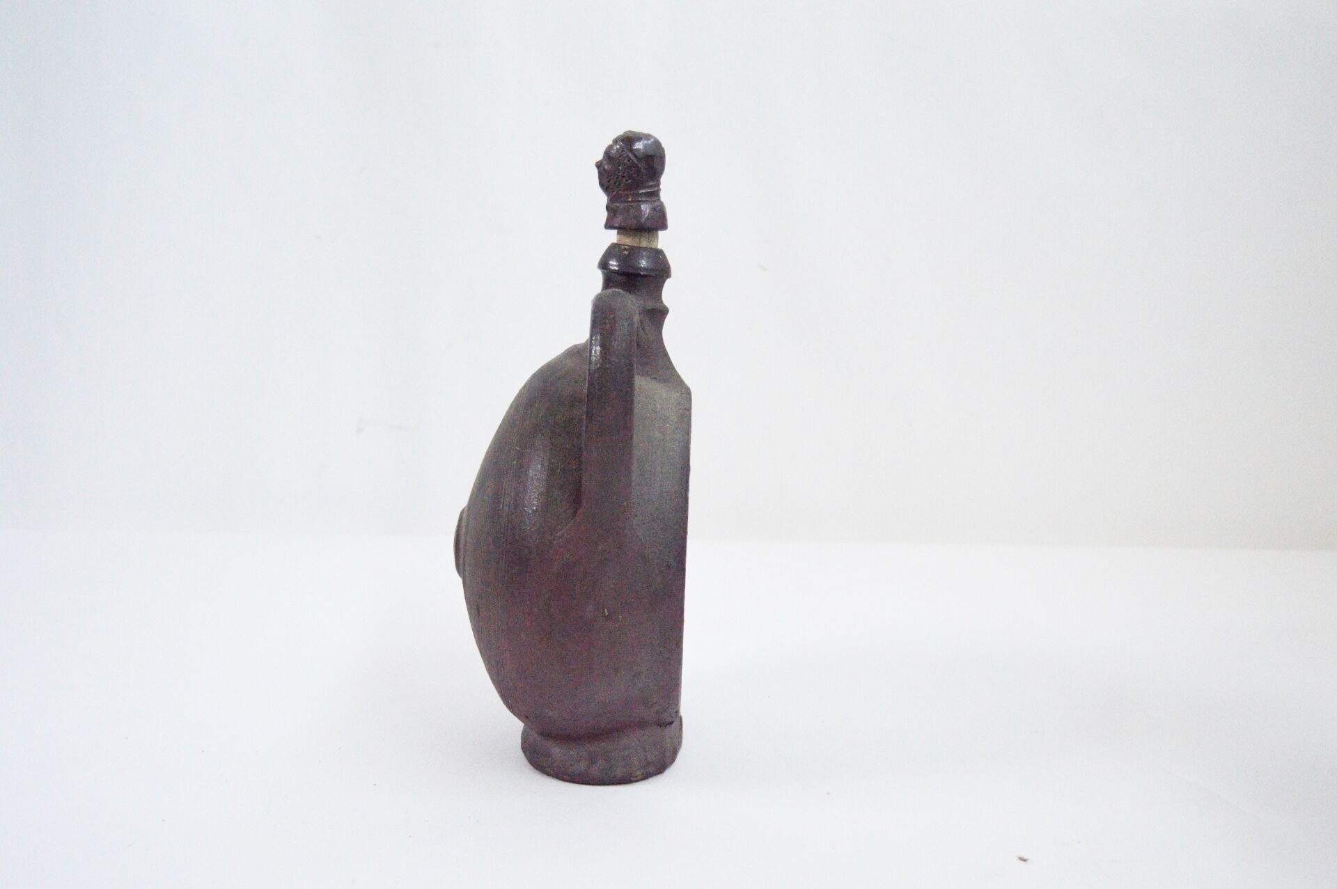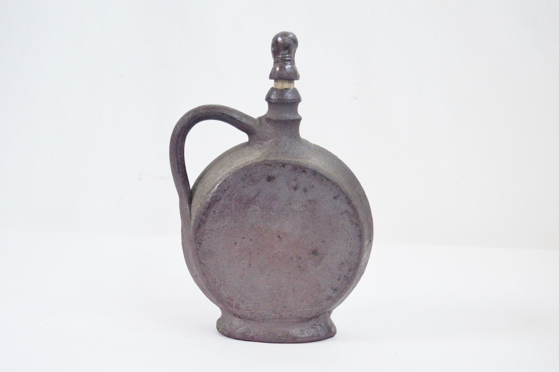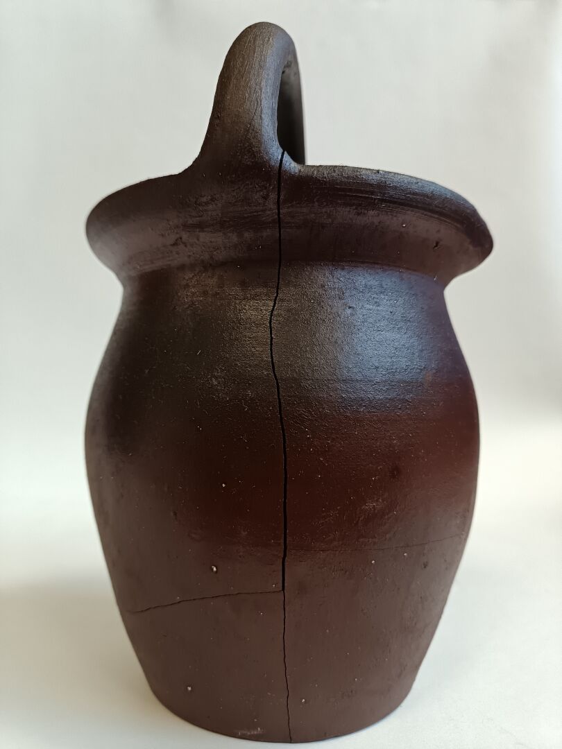 Bouteille à calvados et pot à soupe en terre cuite Bouteille : H : 31 cm ; L : 22 cm ; l : 12 cm Pot à soupe : H : 26 cm ; D : 18 cm
