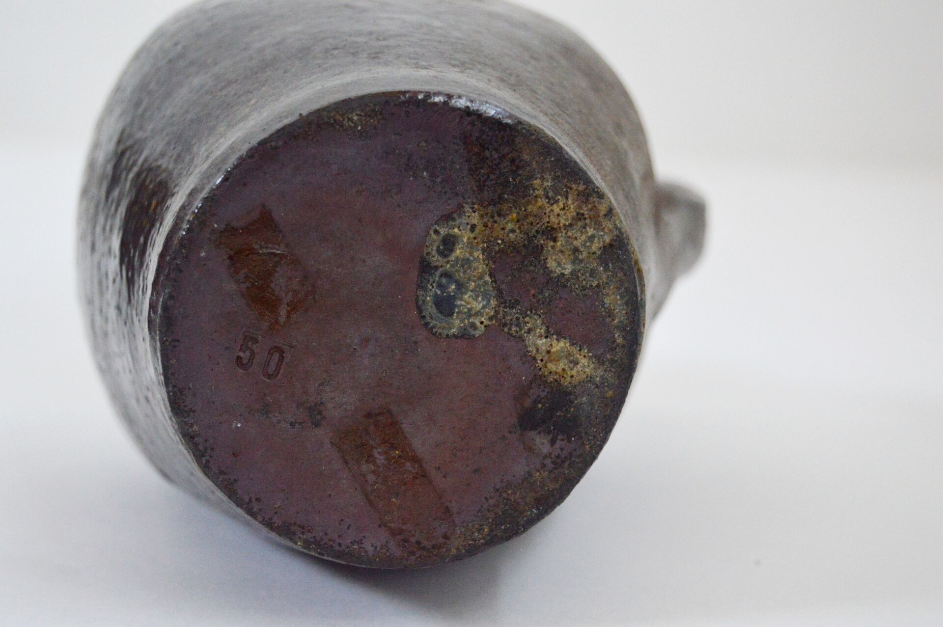 Néhou. Lot comprenant une verseuse, une bouteille et une gourde à liqueur en terre cuite Verseuse : H : 25 cm ; D : 16 cm (20 cm avec anse) Bouteille : H : 18 cm ; D : 14 cm Gourde : H : 21 cm ; D : 11 cm ( 13,5 cm avec anse)