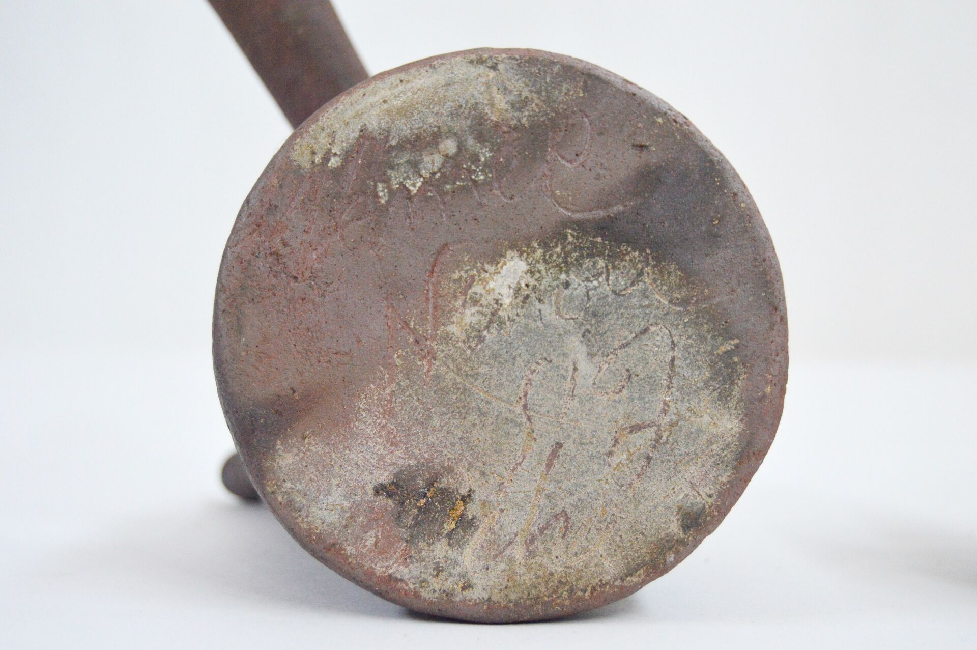 Néhou. Verseuse en terre cuite marquée "Célin 1939". H : 5,5 cm ; D : 7 cm ( 9 cm avec anse )