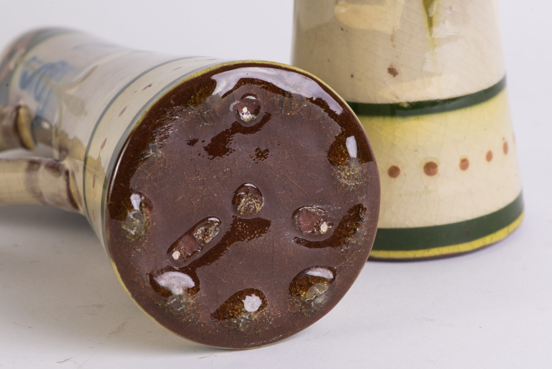 Paire de vases à anses en grès flammé dans le goût Art Nouveau. Vers 1900. H : 26,5 cm ; D : 9 cm