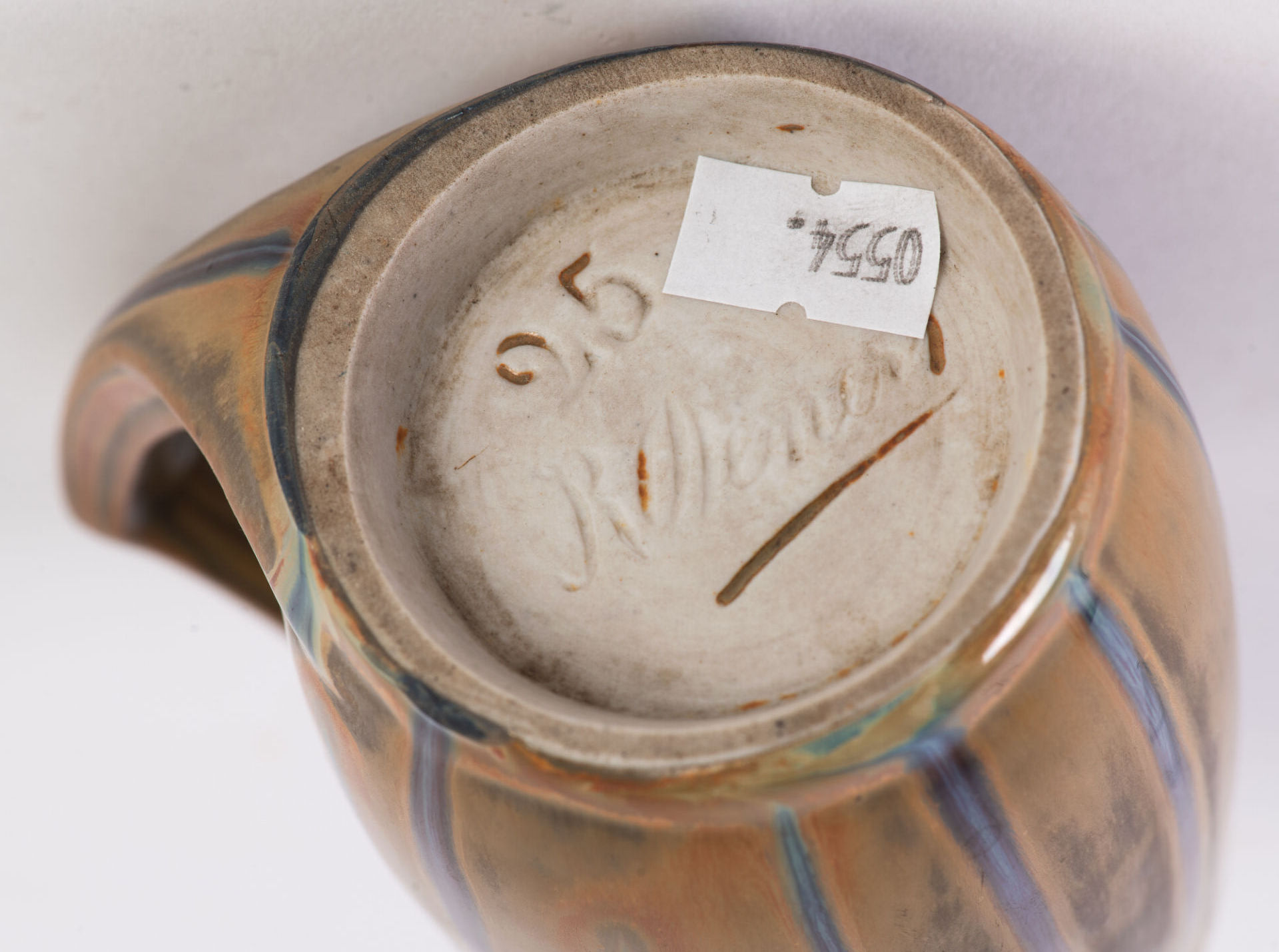 René DENERT (1897-1937). Tasse en grès à couverte polychrome dans le goût Art Nouveau. Signée sous la base. Début XXème. H : 10,5 cm ; L : 10,5 ; l : 7 cm