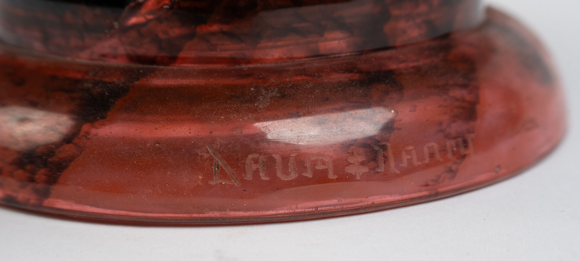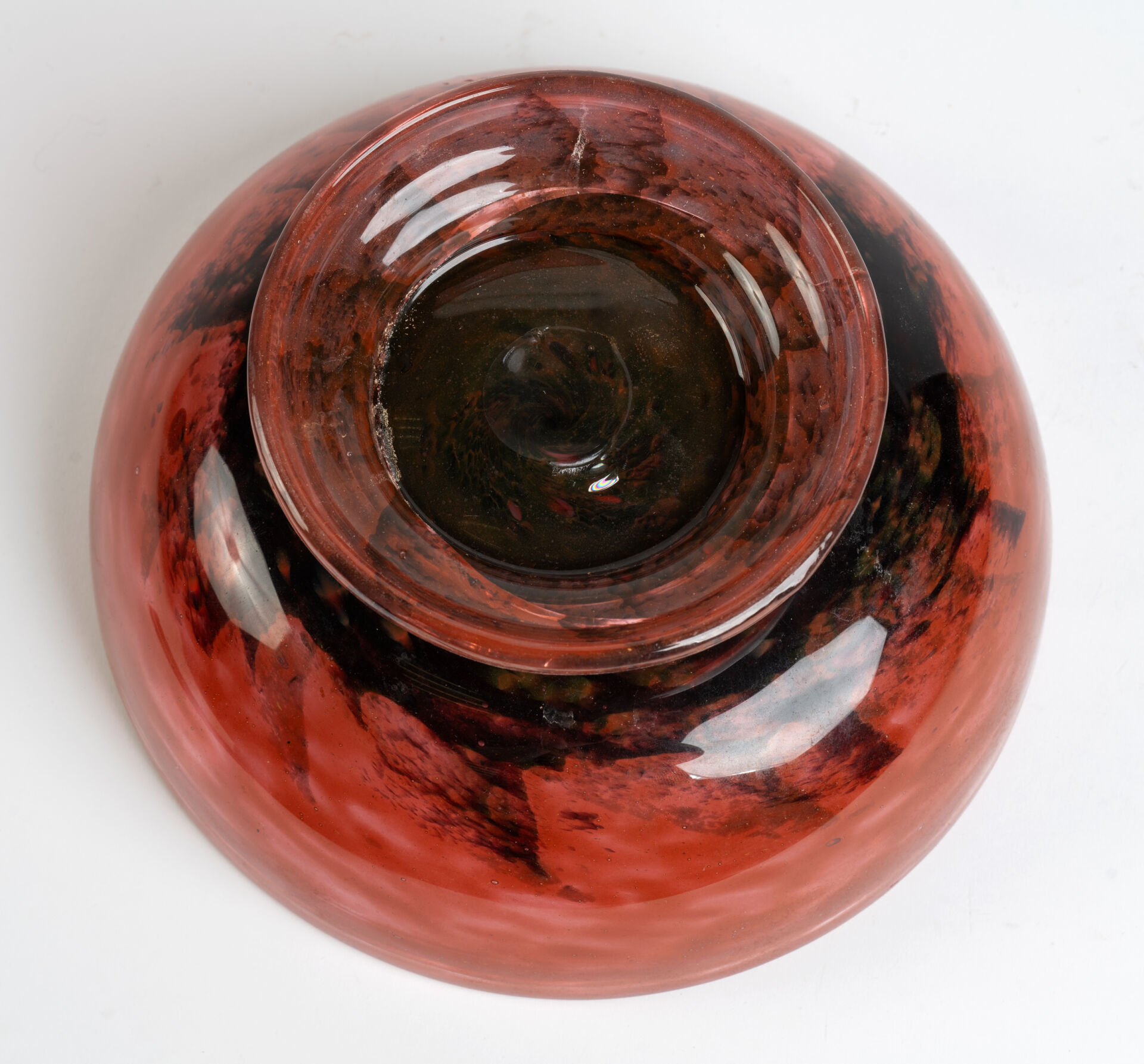 Daum Nancy. Coupe en verre à décor marmoréen rouge. H : 12 cm ; D : 24 cm
