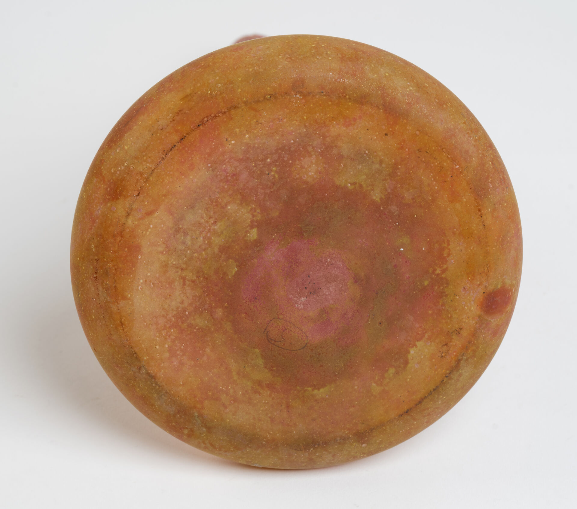 Daum Nancy. Vase soliflore à haut col en verre marmoréen rouge et jaune. Signé à la roue "Daum Nancy". Accidents au col H : 31 cm ; D : 17 cm.