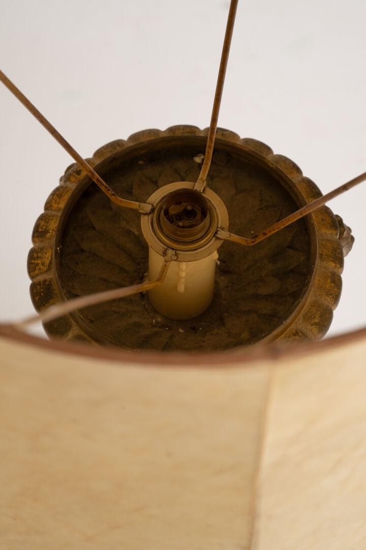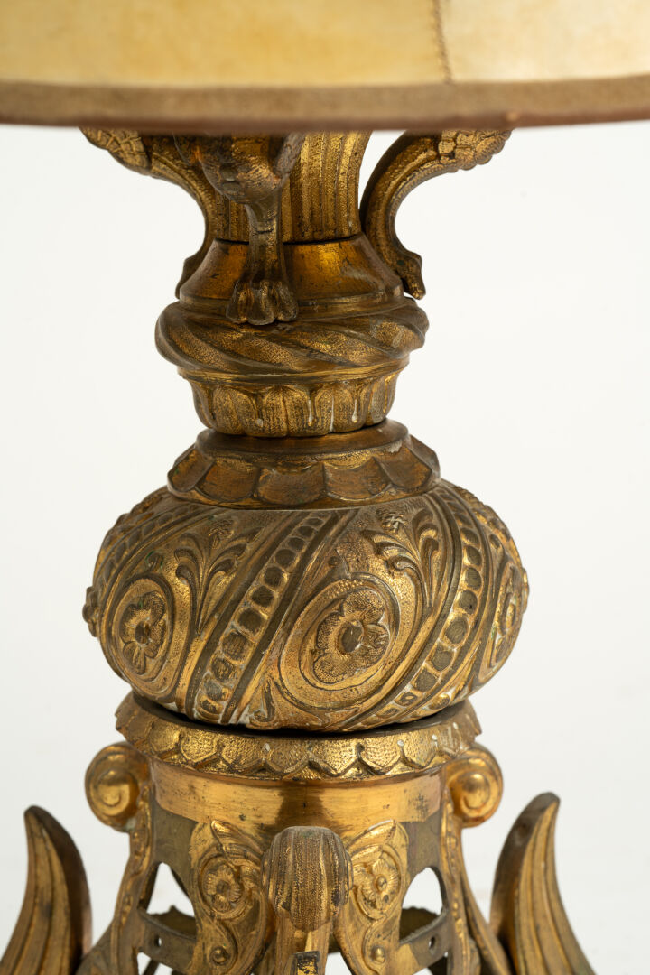 Lampe à poser en bronze. H : 76 cm ; D : 35 cm