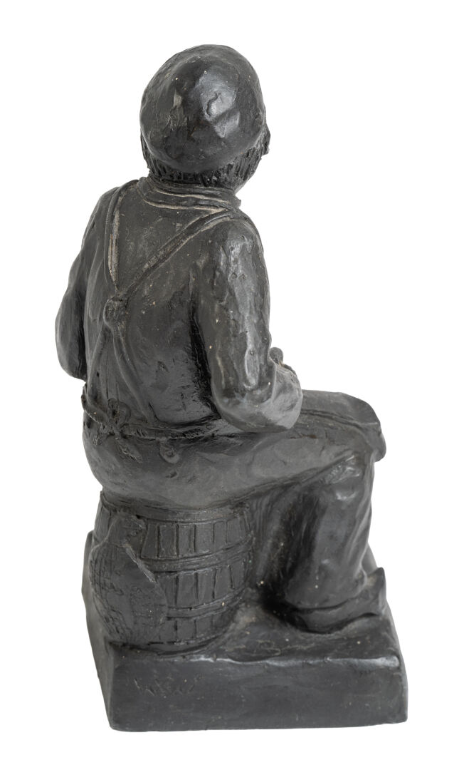 École du XXème. "Le poissonnier" Bronze signé "WW" sur la base. H : 18 cm ; L : 9 cm ; l : 9 cm