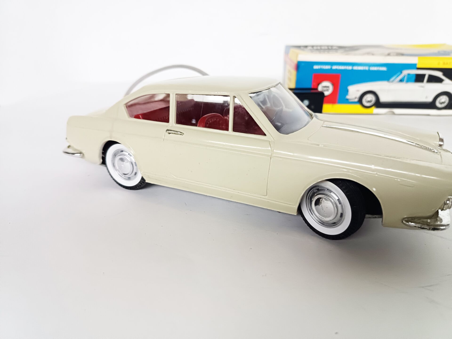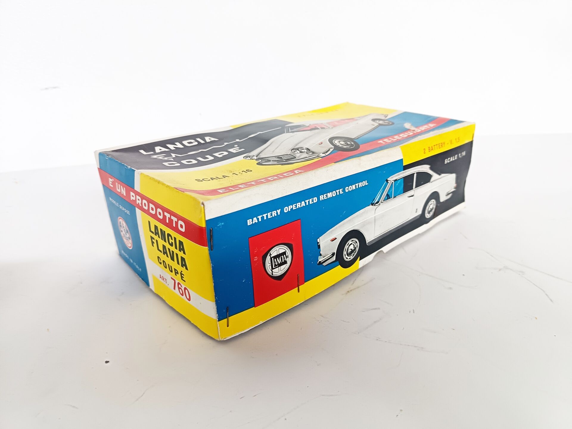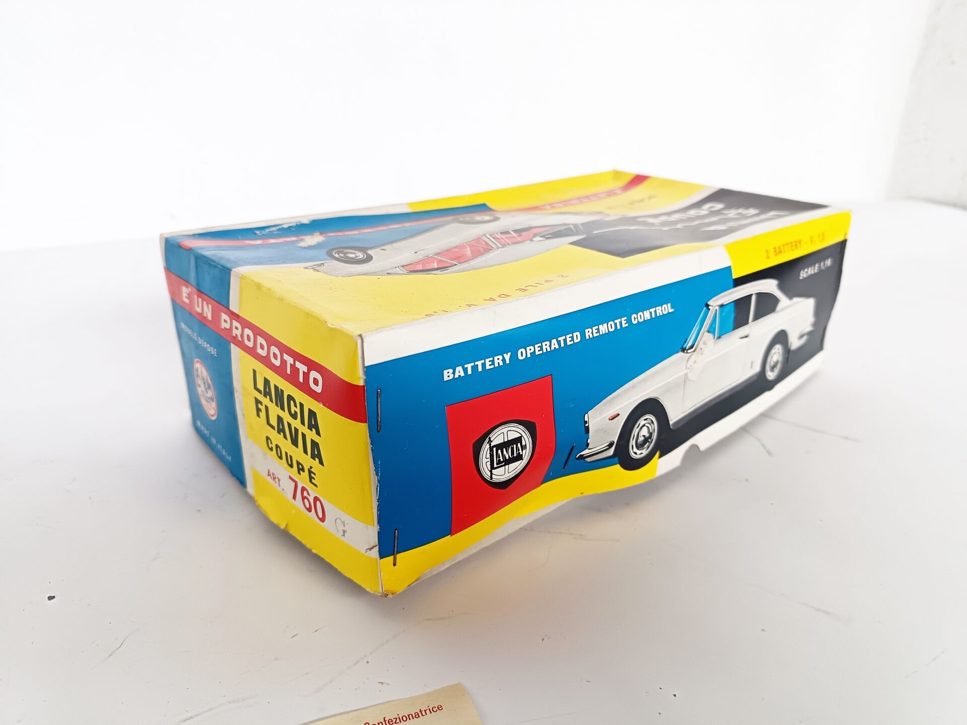 AMB (Italy) 1/16ème. Lancia Flavia coupé, jouet en tôle et plastique filoguidée, L27 cm, réf:760. Très bel état en boite d'origine (boîte légèrement défraîchie).