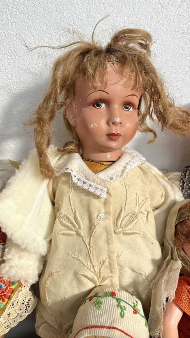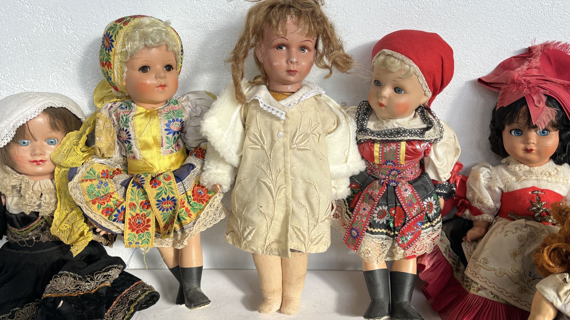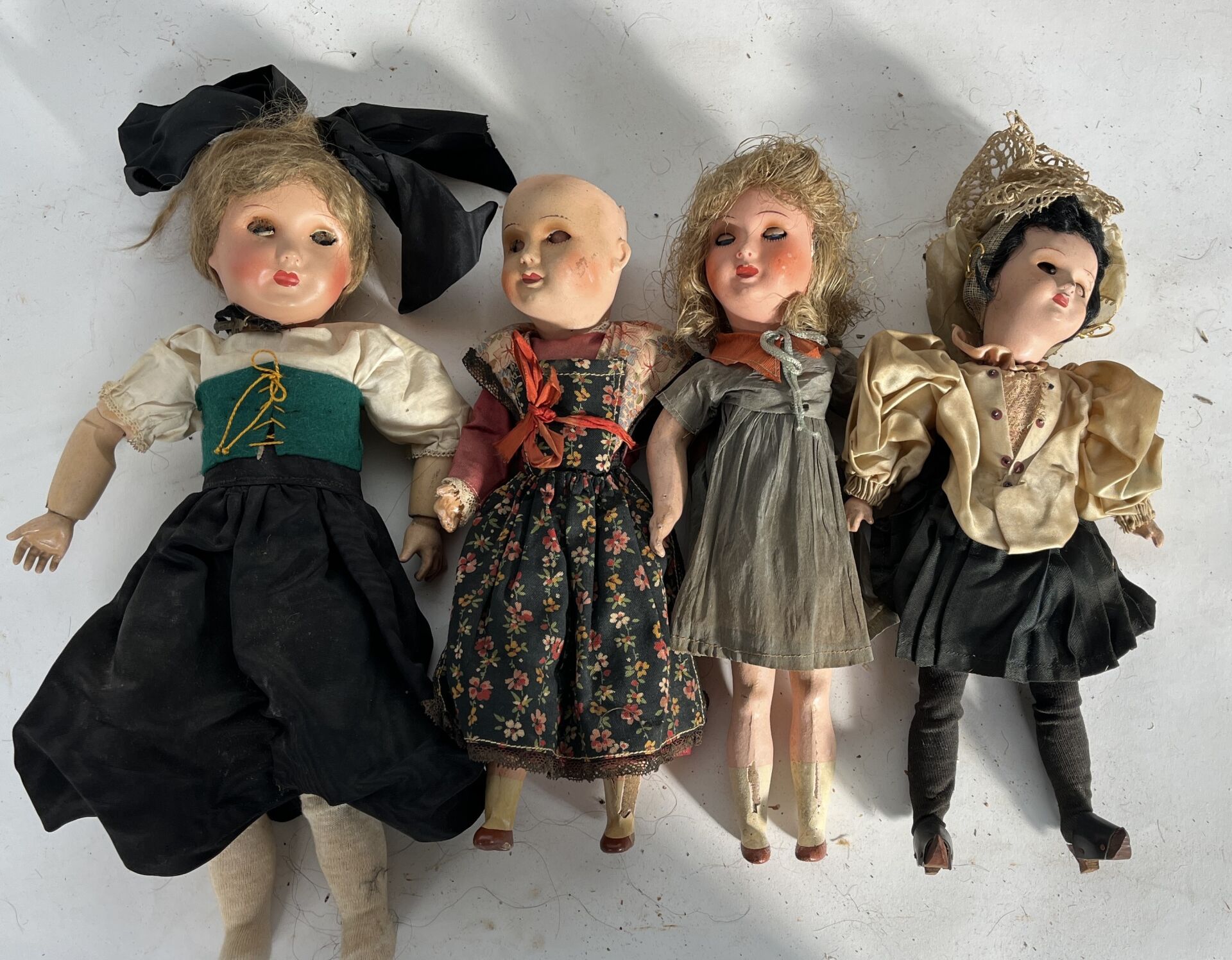 SFBJ, GéGé, etc... Lot de 14 poupées à tête en composition, corps en composition ou tissus, costume folklorique et autres. Bon état à passable. Vendu en l'état. H de 24 à 44 cm