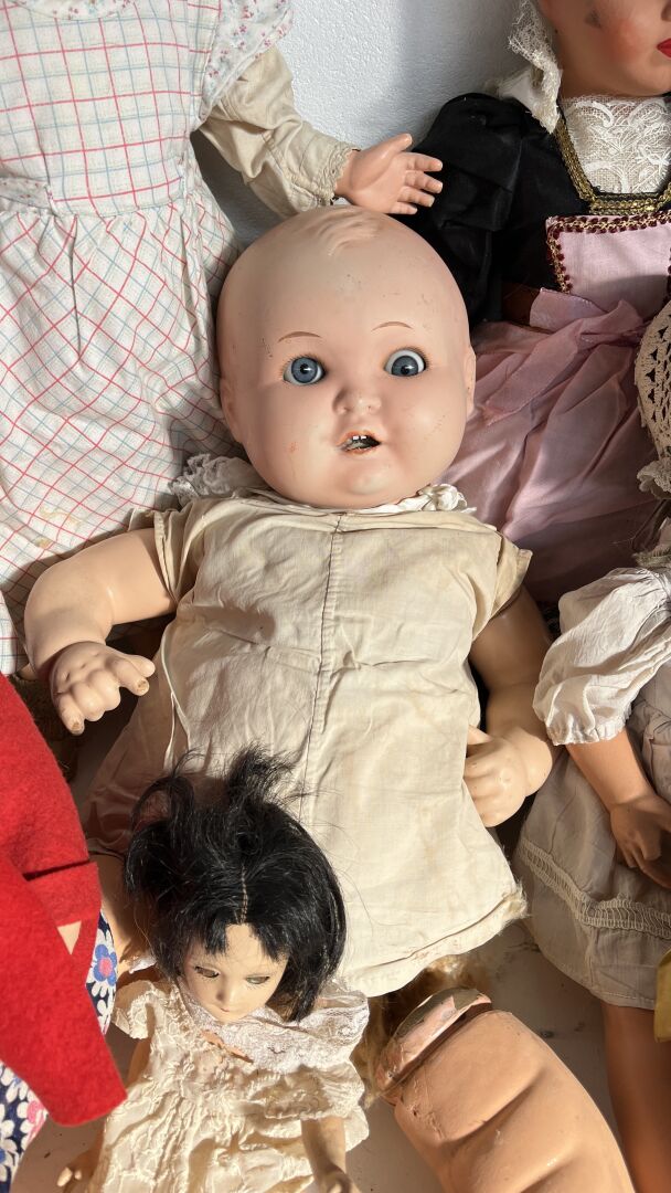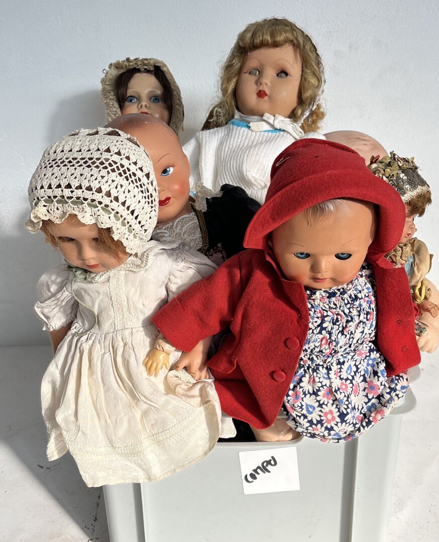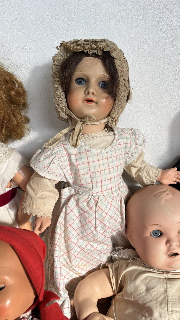 SFBJ moule 30 et divers. Lot de 10 poupées ou poupons à tête en composition, corps en composition, costume folklorique et autres Bon état à passable. H de 27 à 55 cm Vendu en l'état