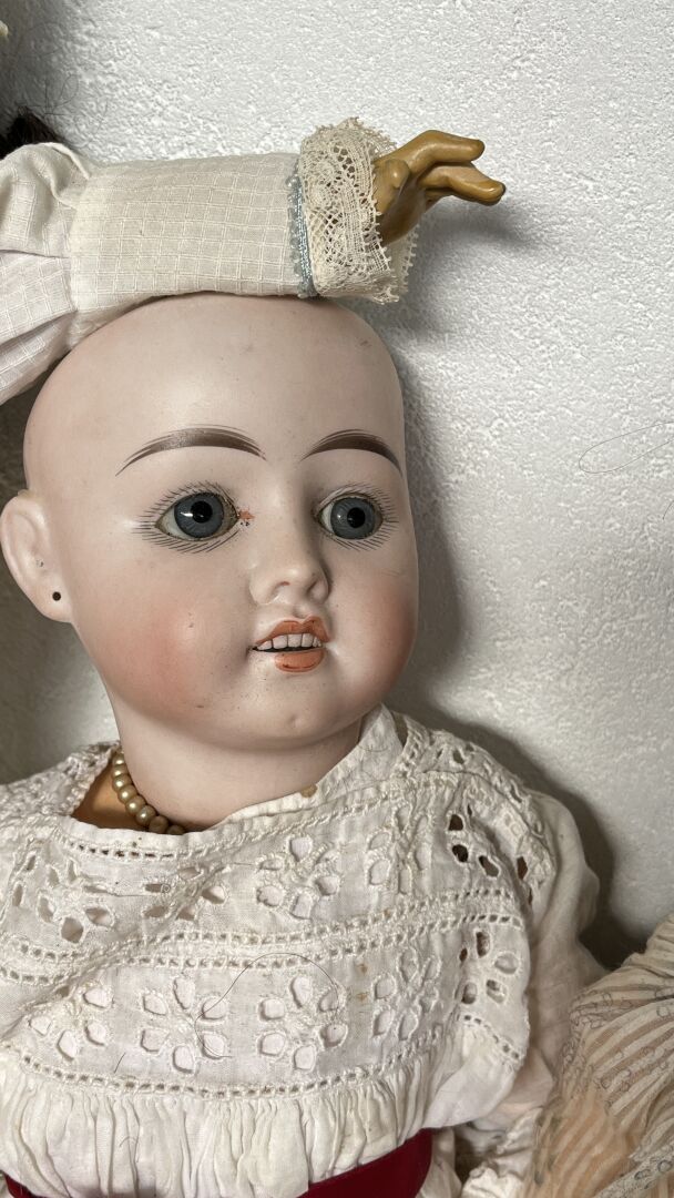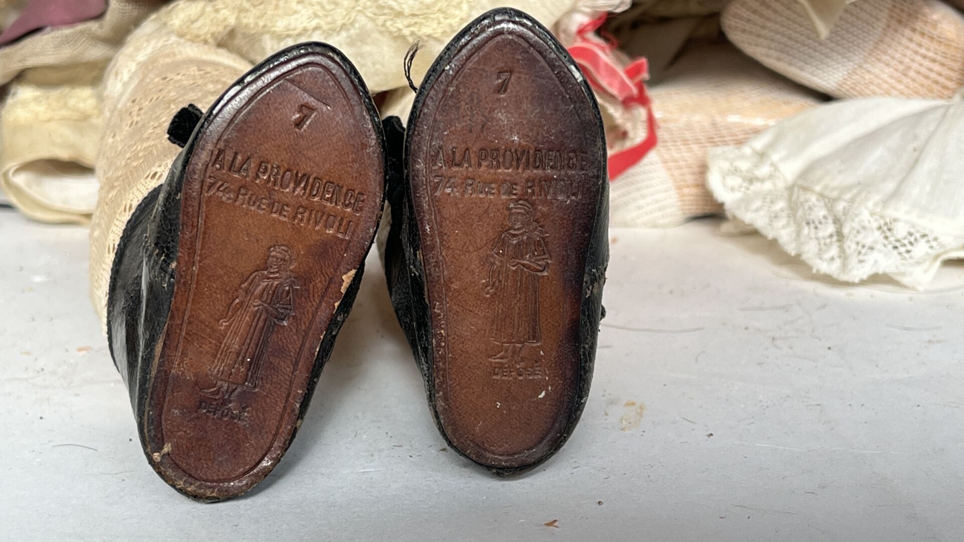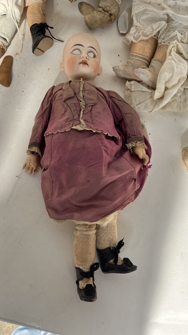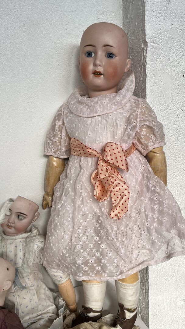 Germany. Lot de 10 poupées de divers fabricants de taille divers. Manques et accidents. Vêtements en partie anciens dont une très jolie paires de chaussures taille 7 marquée à « à la providence, 74 Rue de Rivoli, marquée à l'ange ». L'ensemble est vendu en l'état.